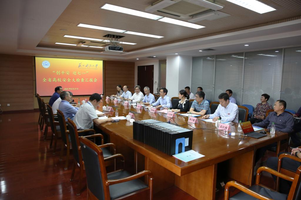 5月27日,江苏省高校“创平安 迎七一”安全工作检查组一行四人,对我校安全工作进行检查。学校党委副书记王荣庆以及党委办公室、保卫处、教务处、研究生部、学生处、资产与后勤管理处、信息化建设与管理中心、后勤服务总公司等职能部门负责人参加会议和陪同检查。校党委书记张庆奎在汇报会前会见了专家组。