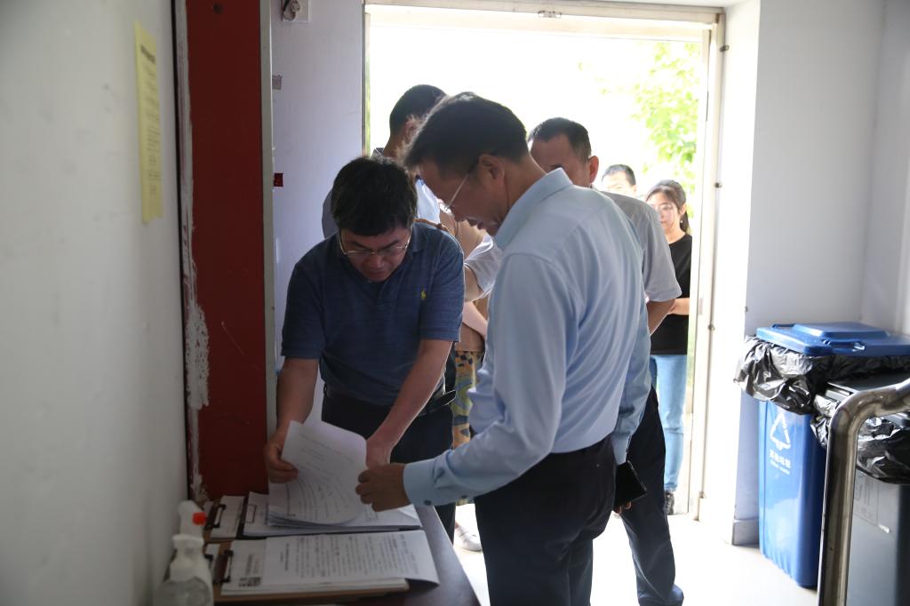 姜朋明一行先后来到东区食堂、学生宿舍、留学生公寓、隔离点、西区防疫物资仓库等地,检查餐厅消杀、宿舍人员出入登记、隔离点管理、防疫物资储备等情况,并与疫情防控一线的教职工进行深入交流。各职能部门负责人就常态化疫情防控措施落实情况进行了介绍。