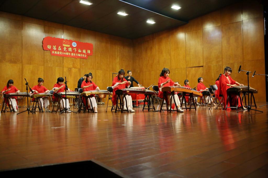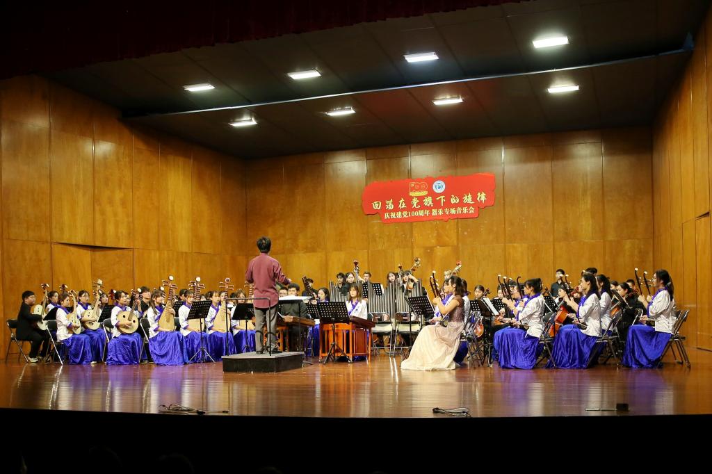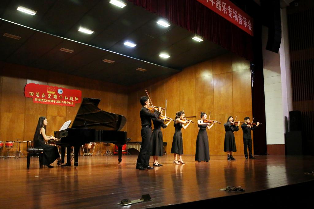 26日晚,指导组一行在音乐厅欣赏了由音乐学院党总支、天平学院党委主办,音乐学院器乐系、天平学院艺术学院承办的“回荡在党旗下的旋律——庆祝建党100周年器乐专场音乐会”。校长姜朋明、党委副书记王荣庆、党委宣传部部长李萍、音乐学院、天平学院负责人等陪同。本场音乐会的11个节目中既有大家耳熟能详的经典曲目,也有器乐系老师创作、新编的曲目。弓弦悠扬、琴瑟和鸣,异彩纷呈,器乐系师生们用手中的乐器奏响了中国经典作品的绚丽乐章,用优美的旋律倾诉了对中国共产党的崇敬与热爱。