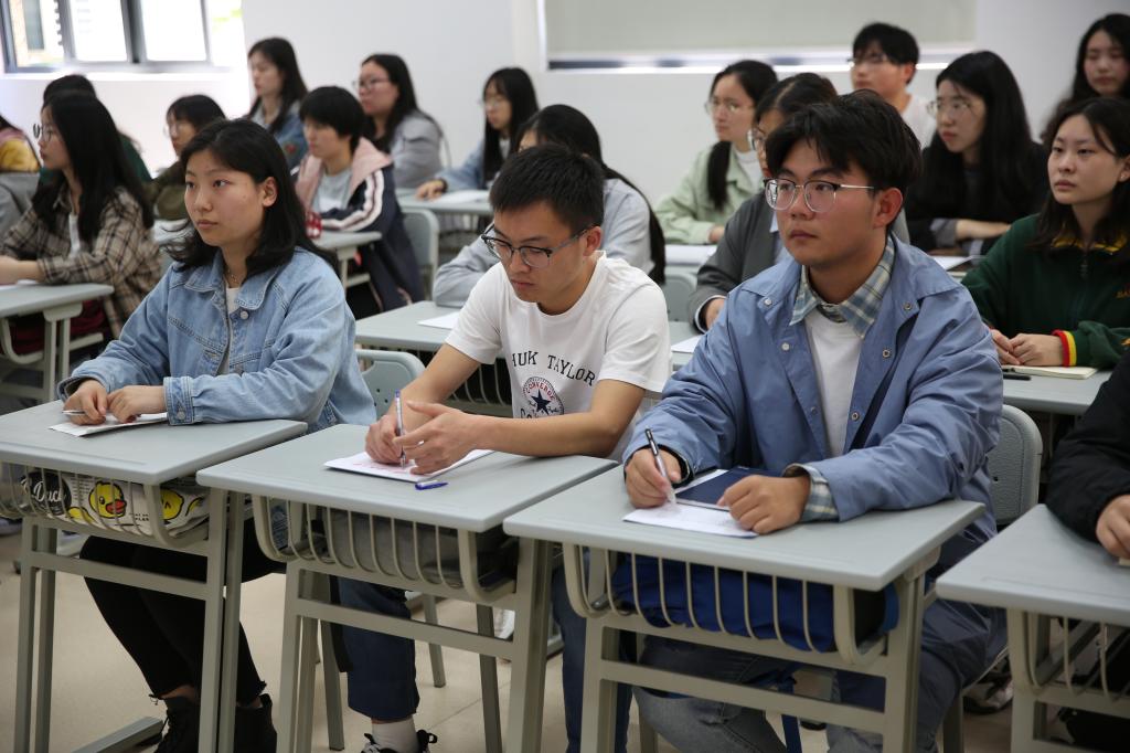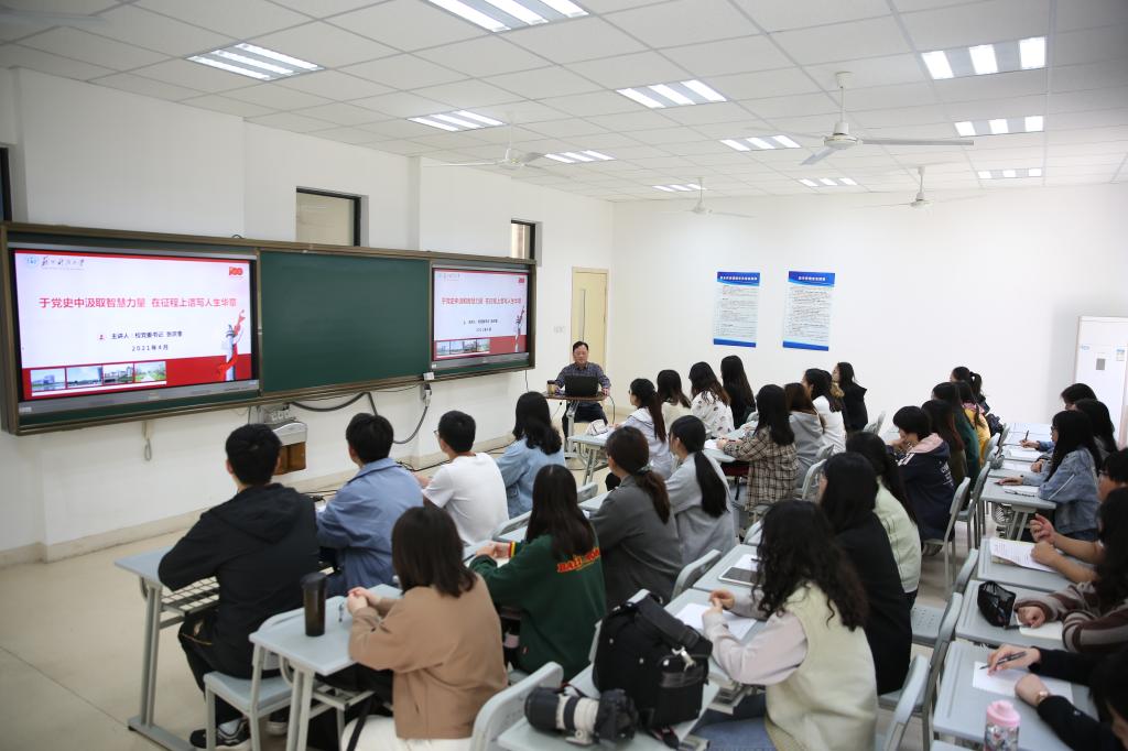 4月29日上午,校党委书记张庆奎走进石湖校区4教110教室,以“于党史中汲取智慧力量,在征程上谱写人生华章”为题,为文学院汉语言文学专业1911班本科生讲授了一堂内涵丰富、精彩纷呈的党史专题思政课。