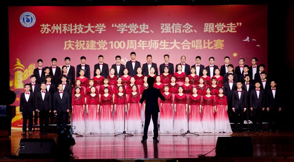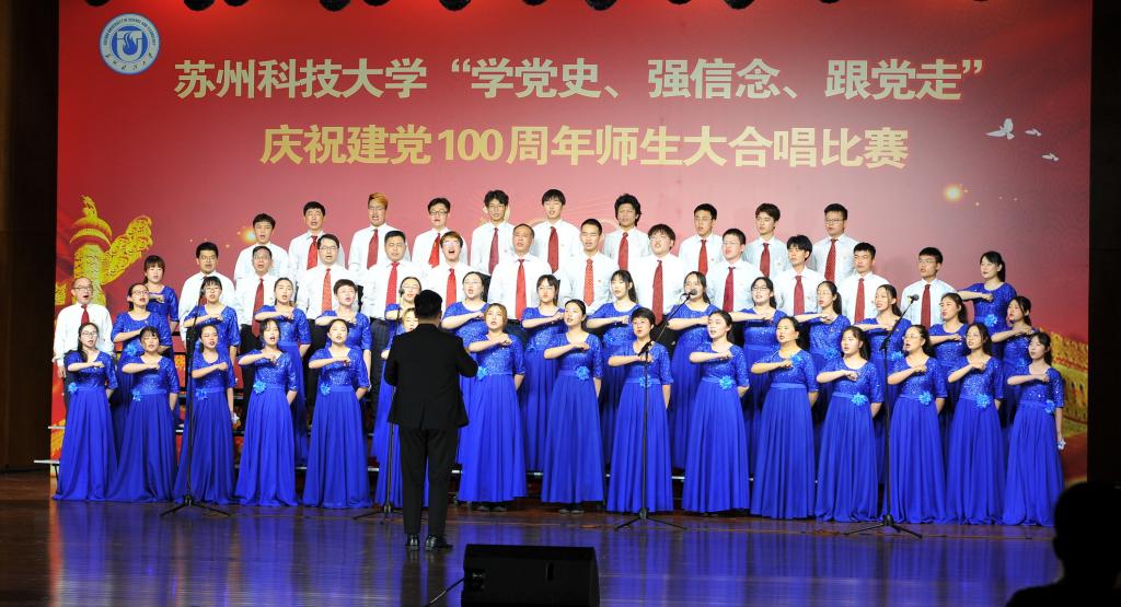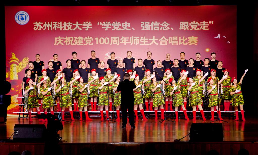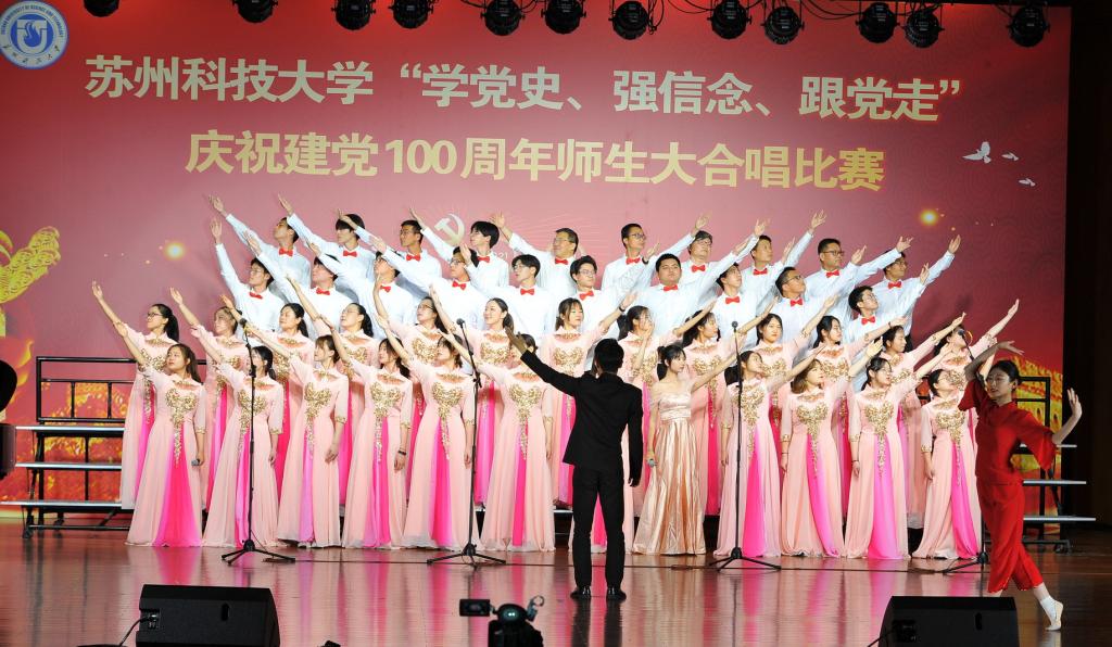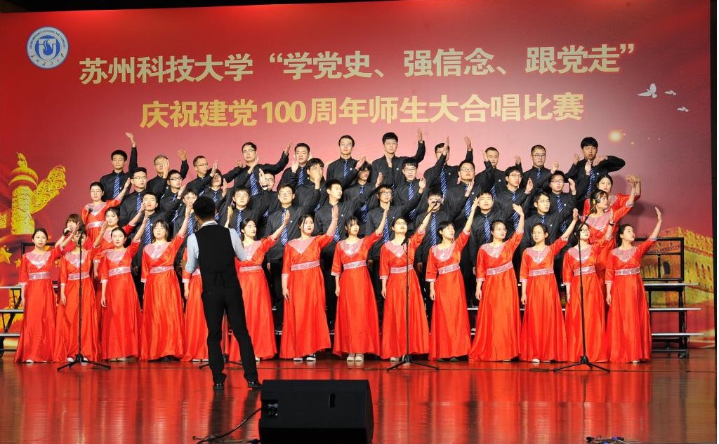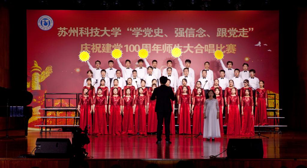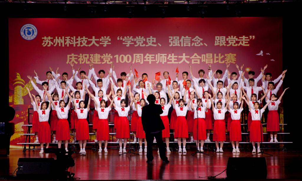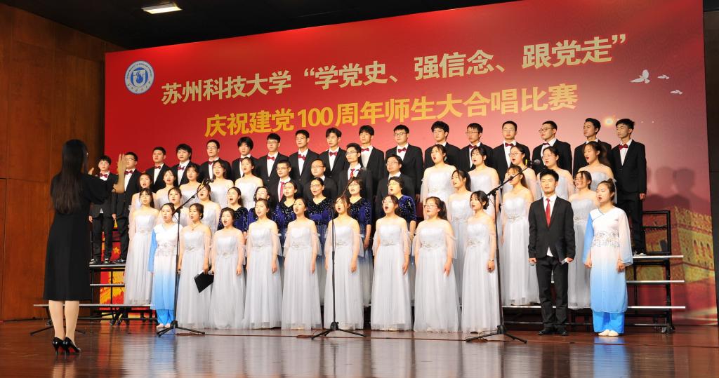“唱支山歌给党听,我把党来比母亲,母亲只生了我的身,党的光辉照我心……”5月19日下午,苏州科技大学石湖音乐厅内歌声飞扬,乐韵悠悠,“学党史、强信念、跟党走”庆祝建党100周年师生大合唱比赛精彩举行。全校19支参赛队伍、3支表演队伍、共计1200余名师生齐聚一堂,满怀激情唱响经典,演绎了一场视听盛宴。