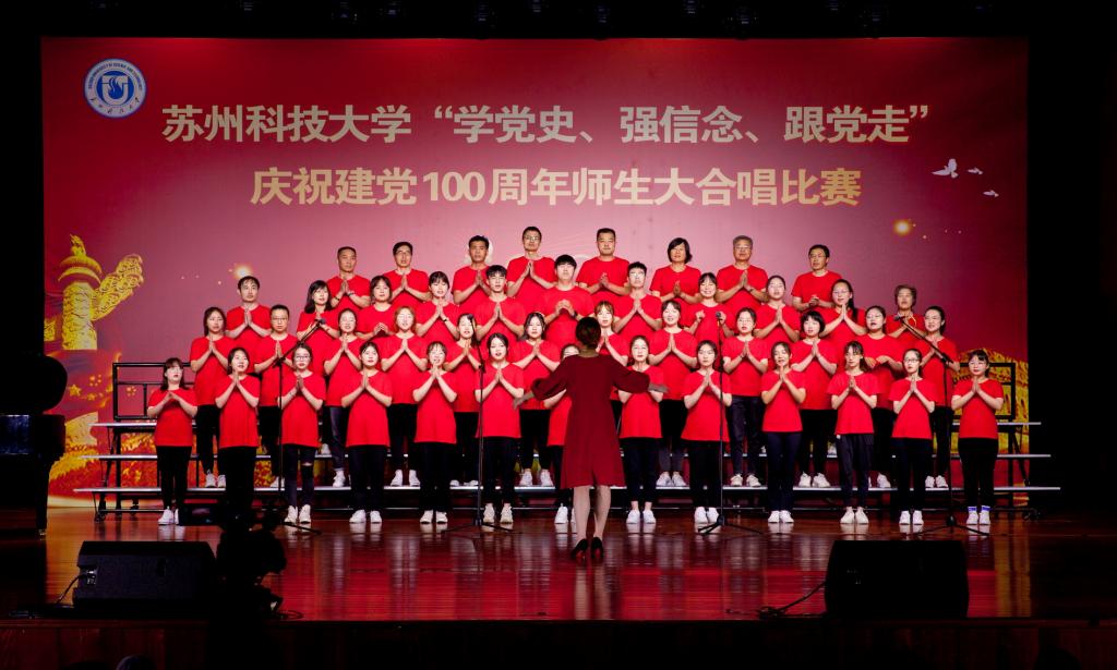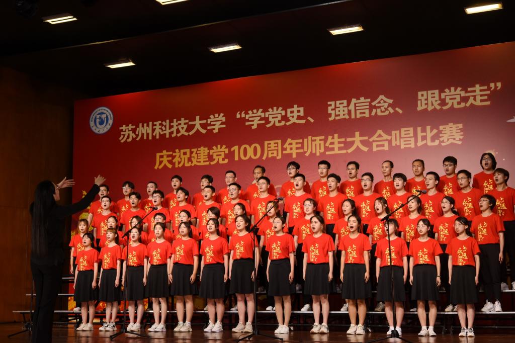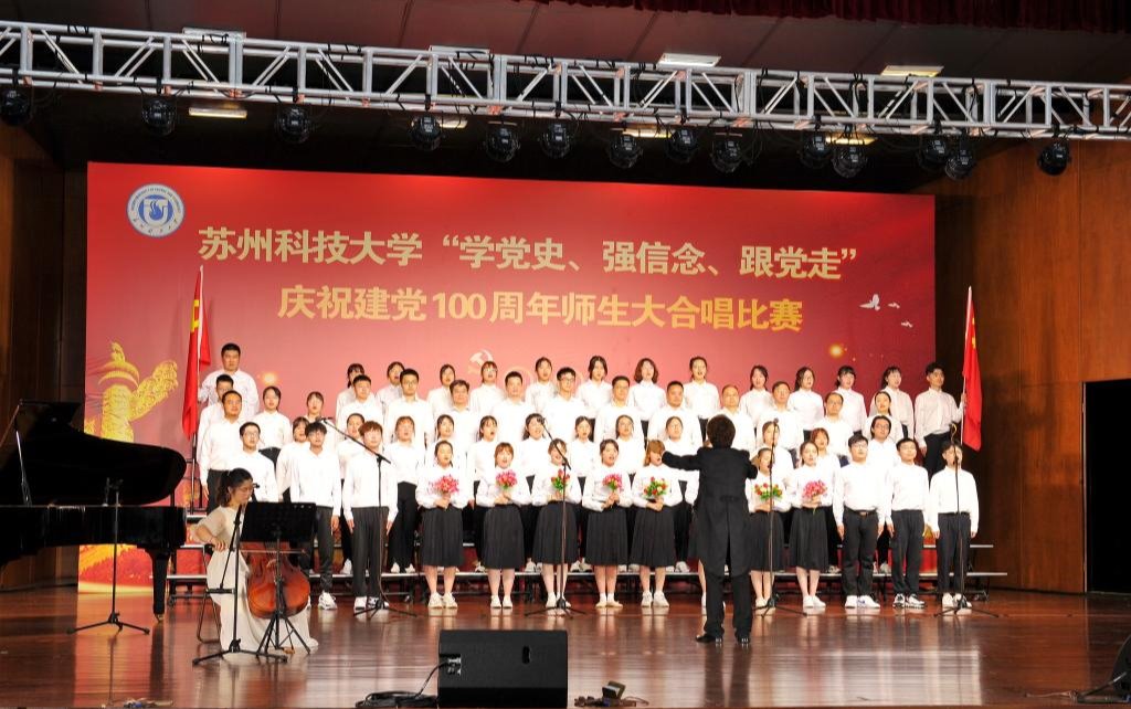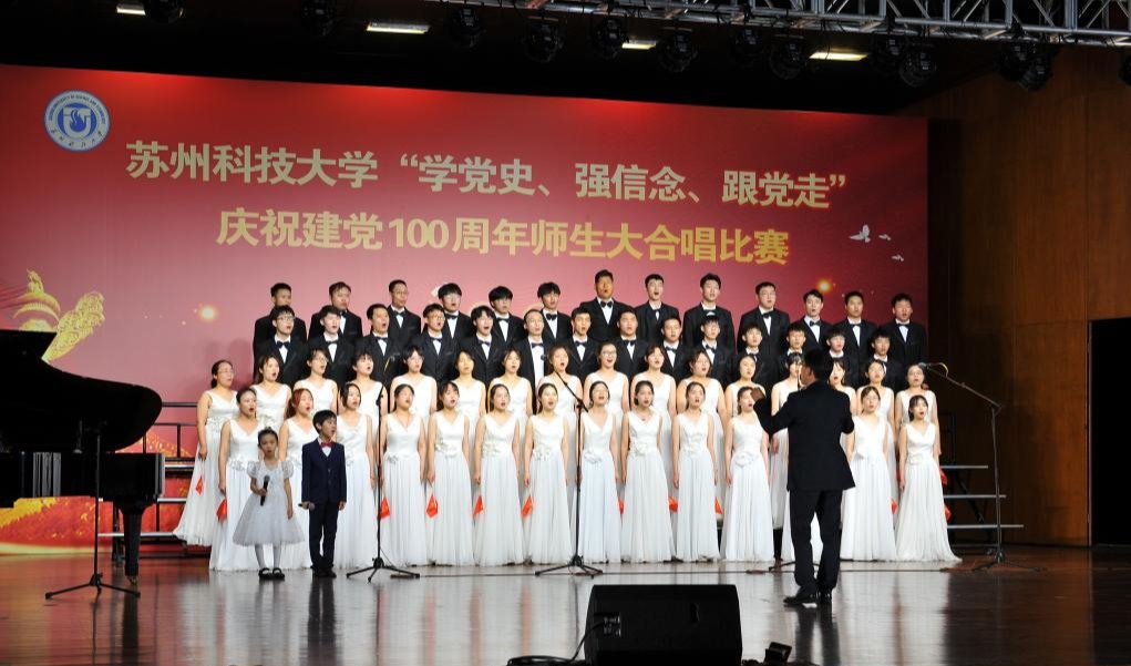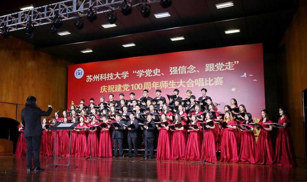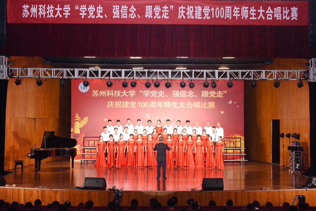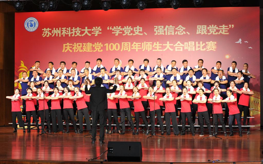 “唱支山歌给党听,我把党来比母亲,母亲只生了我的身,党的光辉照我心……”5月19日下午,苏州科技大学石湖音乐厅内歌声飞扬,乐韵悠悠,“学党史、强信念、跟党走”庆祝建党100周年师生大合唱比赛精彩举行。全校19支参赛队伍、3支表演队伍、共计1200余名师生齐聚一堂,满怀激情唱响经典,演绎了一场视听盛宴。