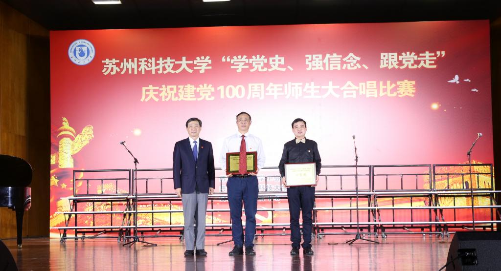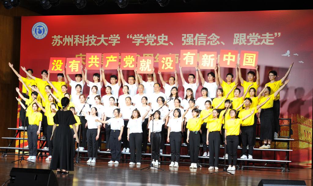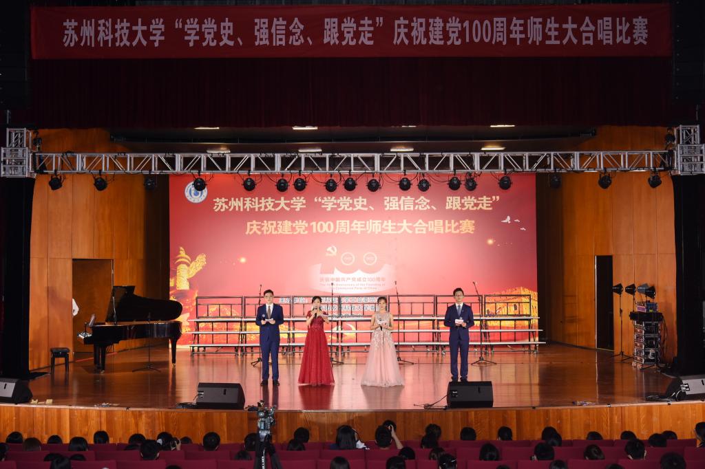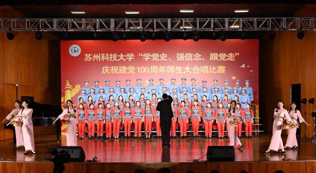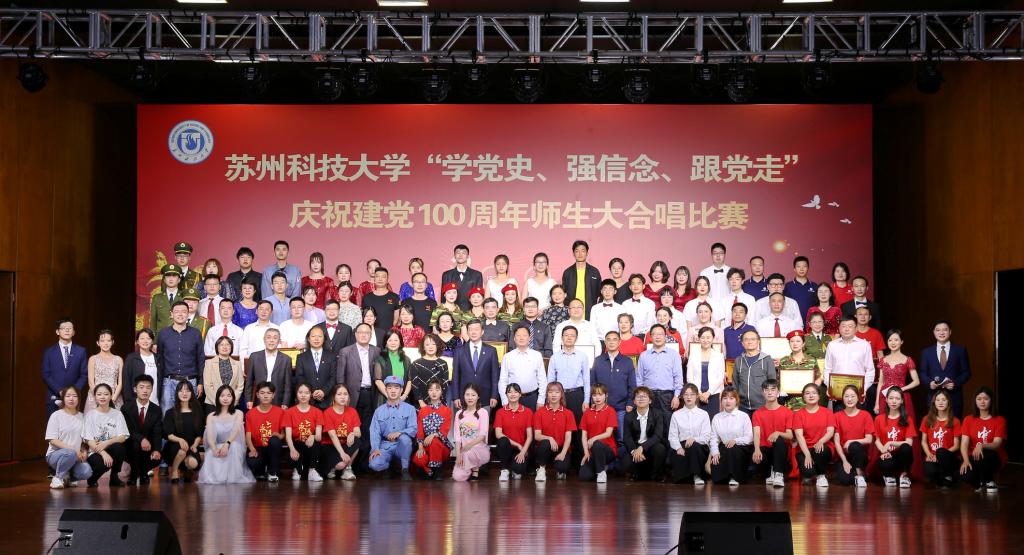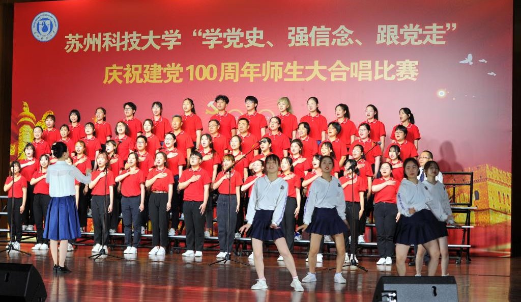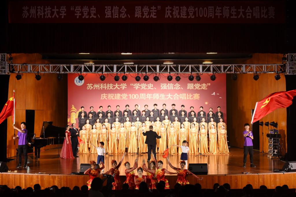 “唱支山歌给党听,我把党来比母亲,母亲只生了我的身,党的光辉照我心……”5月19日下午,苏州科技大学石湖音乐厅内歌声飞扬,乐韵悠悠,“学党史、强信念、跟党走”庆祝建党100周年师生大合唱比赛精彩举行。全校19支参赛队伍、3支表演队伍、共计1200余名师生齐聚一堂,满怀激情唱响经典,演绎了一场视听盛宴。