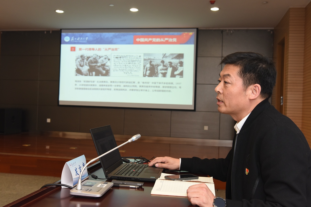 党委常委、副校长崔雪丽领学了党的二十大报告第十五部分“坚定不移全面从严治党,深入推进新时代党的建设新的伟大工程”相关内容。