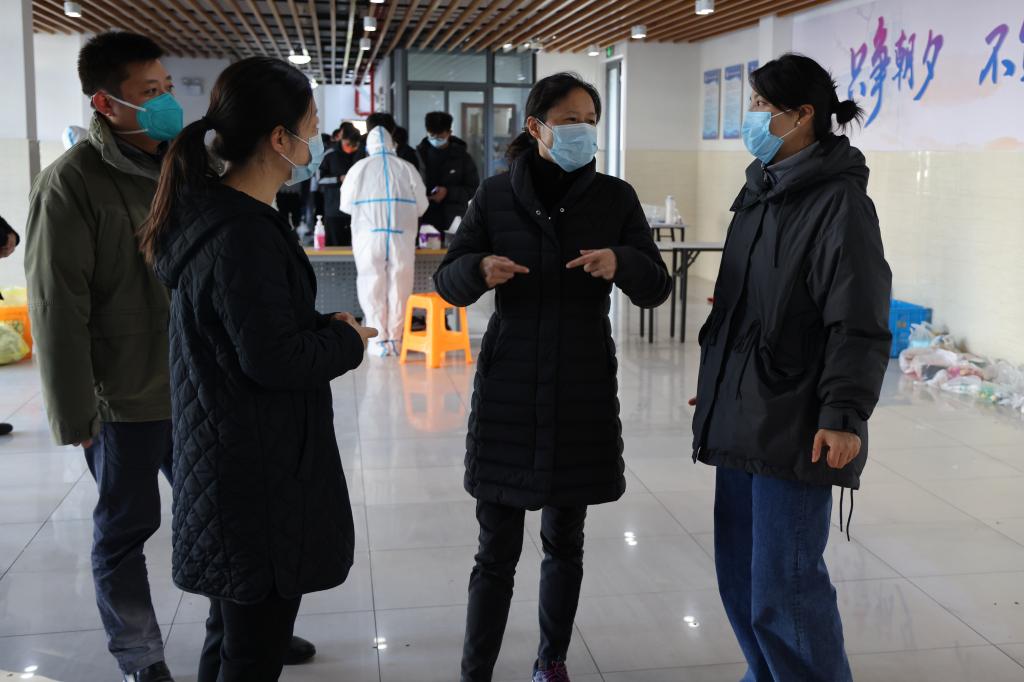 校领导们叮嘱一线工作人员在做好疫情防控工作的同时,要做好科学防护,保重身体;要关心关爱学生,实时掌握学生动态,了解学生需求,快速回应学生反映的问题;要教育引导学生做好自我防护,戴口罩、勤洗手、不聚集,当好自身健康第一责任人;要以毫不放松的精神状态,严格落实好疫情防控各项要求,全力以赴筑牢校园安全防线。
