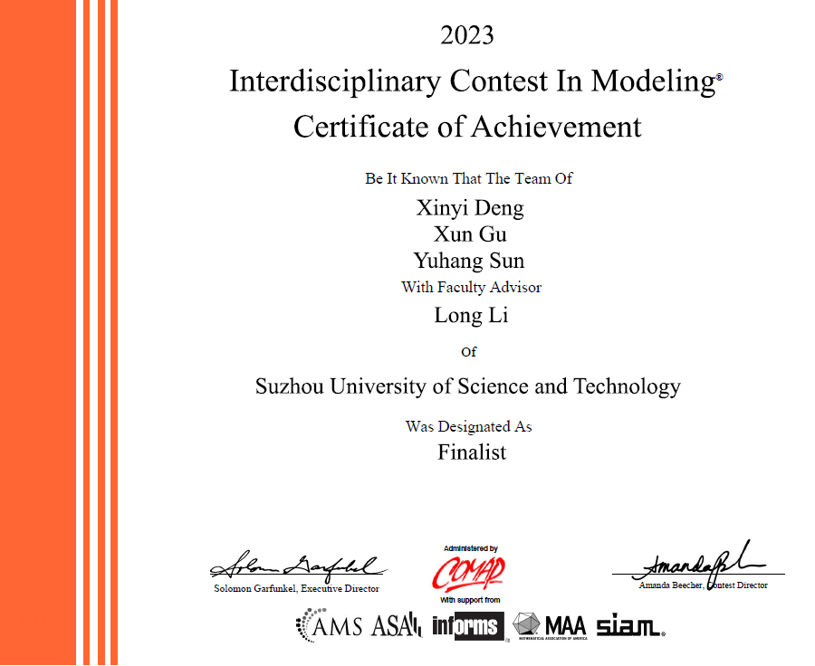 我校学子在2023年美国大学生数学建模竞赛中获佳绩
