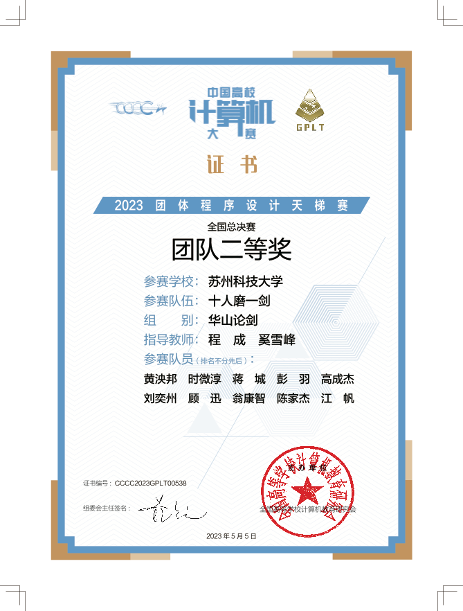 近日,2023年第八届中国高校计算机大赛-团体程序设计天梯赛获奖名单正式发布,我校荣获全国团队二等奖和三等奖各1项,全国个人三等奖8项。