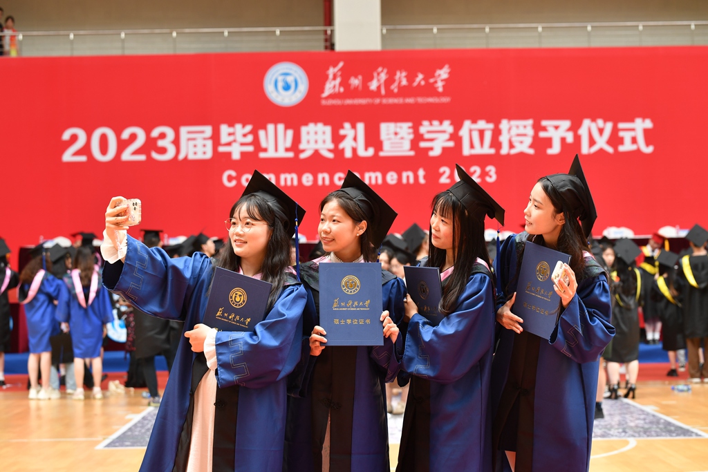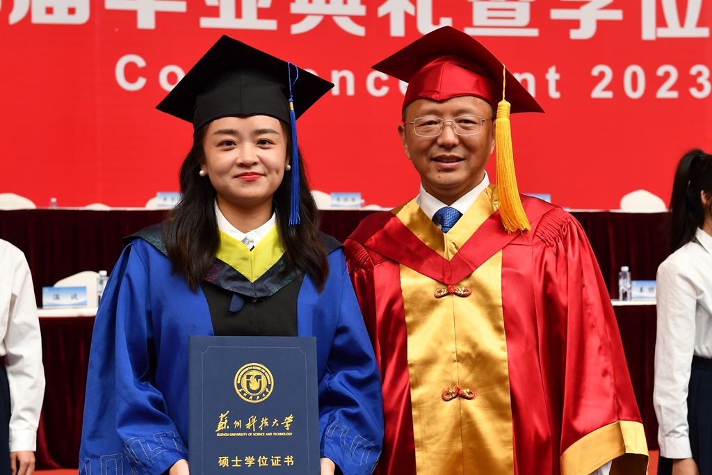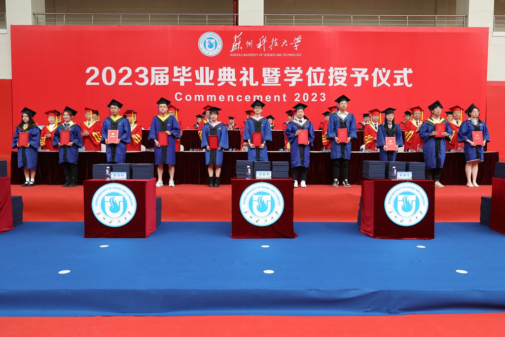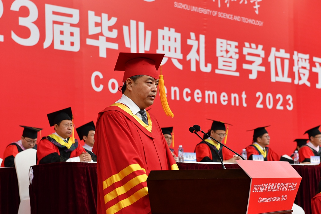 校长顾菊平在讲话中表示,2023届学生勤于学习、敢于担当、长于创新,是苏科大历史上极不平凡的一届优秀毕业生。同学们奋发向上、挥洒汗水演绎的青春故事,必将镌刻在母校建设江苏高水平大学的壮丽征程中。临别之际,顾菊平饱含深情地对毕业生们提出三点希望:一是眼里有光、心中有魂,做有家国情怀的苏科大人。要把母校“‘服务美丽中国’建设为己任”的优良传统牢记在心、付诸于行。二是脚下有泥,心中有根,做有使命担当的苏科大人。把“走在前列、干在实处”作为工作追求,努力做到无愧自己、无愧时代。三是枕边有书、心中有梦,做有过硬本领的苏科大人。多读书,勤思考,在实践中不断修炼内功、磨炼意志,让梦想之路在脚下不断延展。