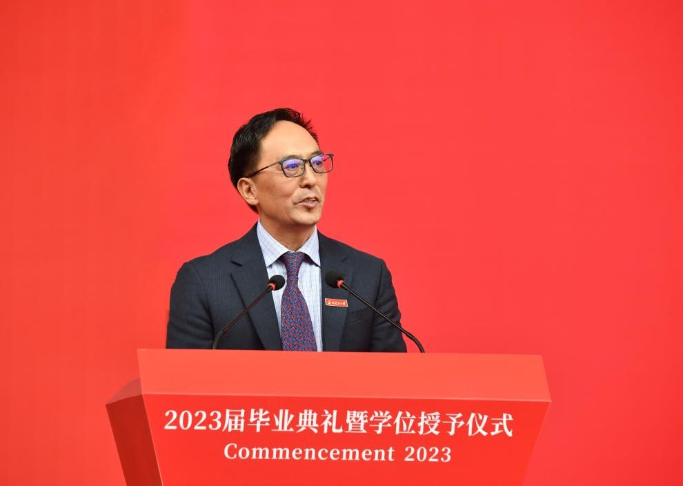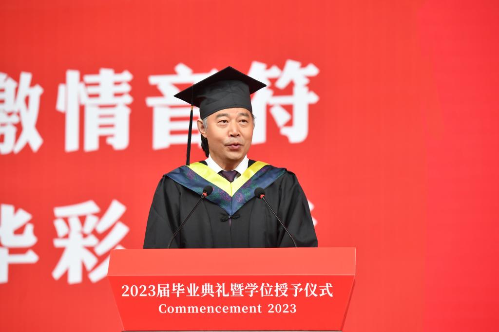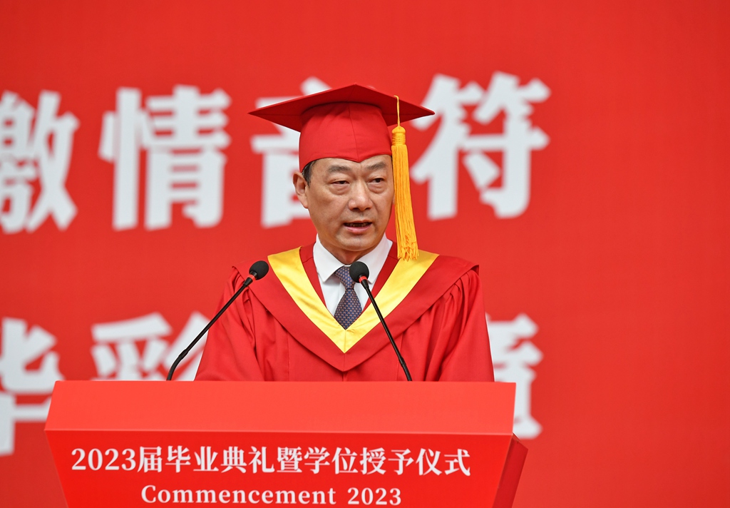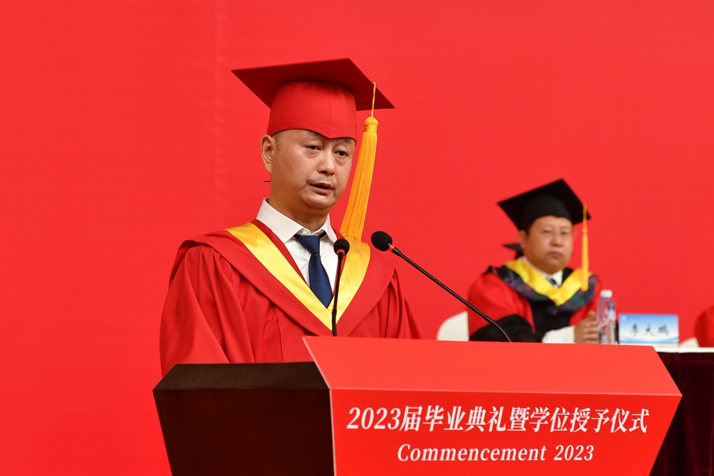 升旗仪式后,毕业典礼正式开始。党委副书记、副校长田晓明和党委常委、纪委书记张德高分别宣读了《关于表彰2023届优秀本科毕业生的决定》和《关于表彰2023届优秀毕业研究生的决定》,校领导为优秀毕业生代表颁奖。