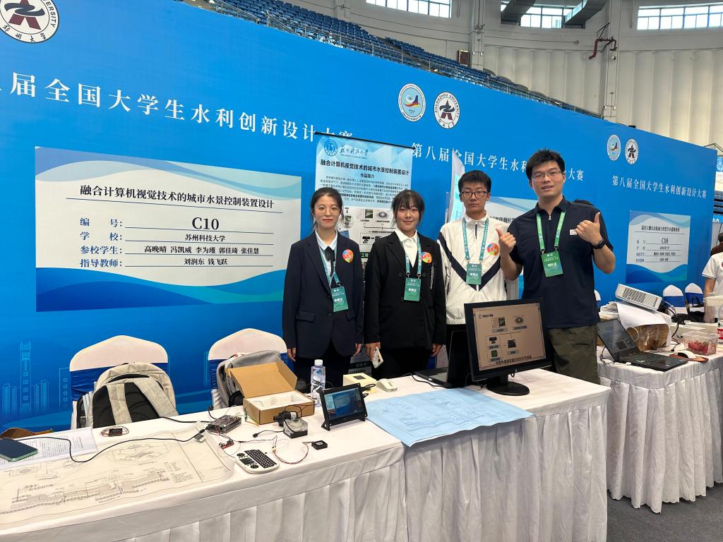 7月15日至7月18日,由中国水利教育协会主办,郑州大学承办的第八届全国大学生水利创新设计大赛举行。由我校环境学院刘润东老师、钱飞跃老师指导,高晚晴、冯凯威、李为瑾、郭佳琪、张佳慧等学生共同参与的作品《融合计算机视觉技术的城市水景控制装置设计》荣获全国一等奖。