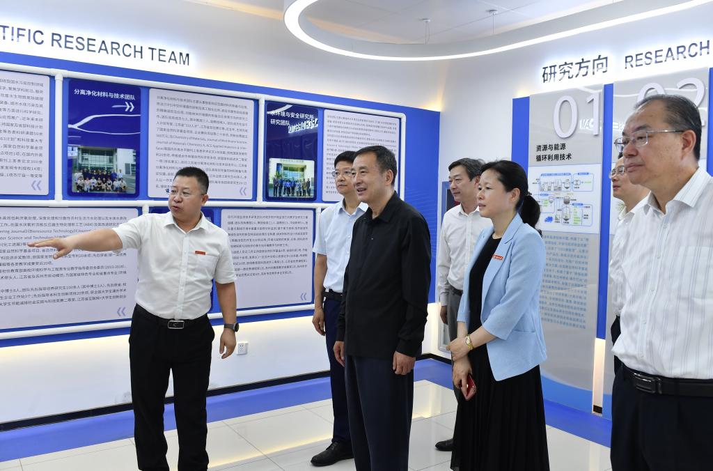 樊金龙一行前往城市生活污水资源化利用技术国家地方联合工程实验室,了解了我校办学历史、办学特色和优势学科等情况,认真听取了学校在服务国家环保战略和地方经济社会发展等方面作出的积极贡献,了解了太湖水质改善的关键技术、智能响应功能膜的性能等。樊金龙询问了实验室仪器设备、成果转化等方面情况,并与师生亲切交谈,希望学校瞄准太湖保护相关难题,突破关键机制,构建关键技术,提出污染防治方案;瞄准国家“卡脖子”问题,多出创新成果,加快成果转化,切实以生态环境高质量保护推进经济高质量建设。