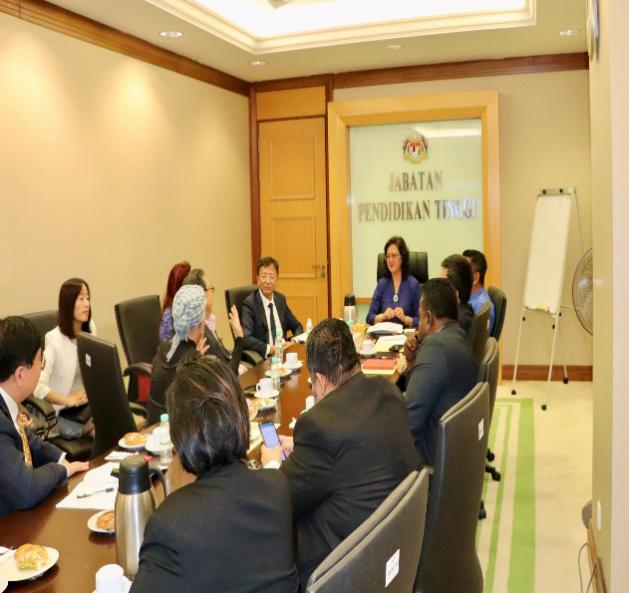 在马来西亚高等教育部,姜朋明介绍了我校与马来西亚理工大学、马来西亚多媒体大学的合作交流成果和未来合作规划,介绍了苏州区位优势和我校办学特色。他表示,希望在马来西亚高等教育部的支持下,共同推动高等教育领域资源共享,推动马来西亚理工大学牵头在苏州建立马来西亚高等教育中心,深化中马产学研合作。国际交流合作司司长阿兹琳达表示,积极支持马来西亚高校与苏科大深化合作,为马中友谊和马中命运共同体注入更多的战略发展动能。