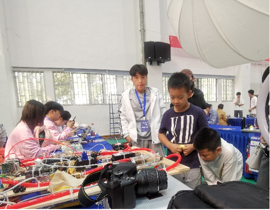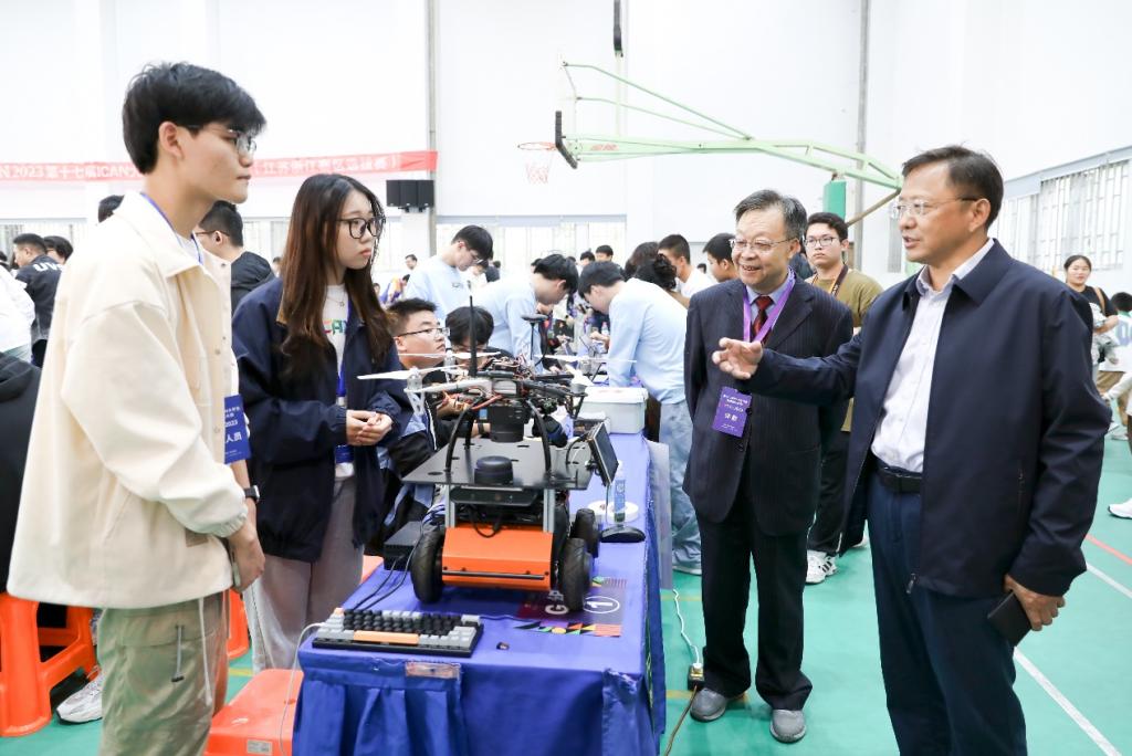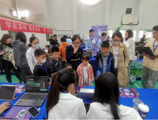 赛事分为成果展示、创新创业科普宣讲、答辩评审三个环节。我校党委书记姜朋明来到现场,与参赛学生亲切交流,对本次赛事的组织给予了高度评价。参赛作品精彩纷呈,吸引了众多苏州市青少年、国外留学生的交流学习。