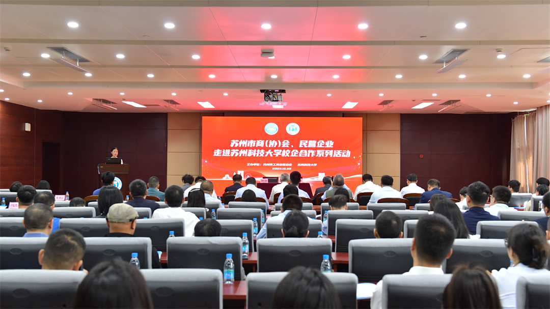 10月30日下午,我校联合苏州市工商联开展“苏州市商(协)会、民营企业走进苏州科技大学”校企合作系列活动。苏州市政协副主席、市工商联主席周俊,市工商联副主席吕瑾,市工商联党组成员、秘书长兼调研(法制)处处长申霖,我校党委书记姜朋明,党委副书记、副校长田晓明,党委常委、副校长崔雪丽,苏州市工商联相关职能部门负责人、相关商(协)会负责人、企业家代表,我校相关职能部门和学院负责人出席活动。活动由校党委常委、副校长崔雪丽主持。