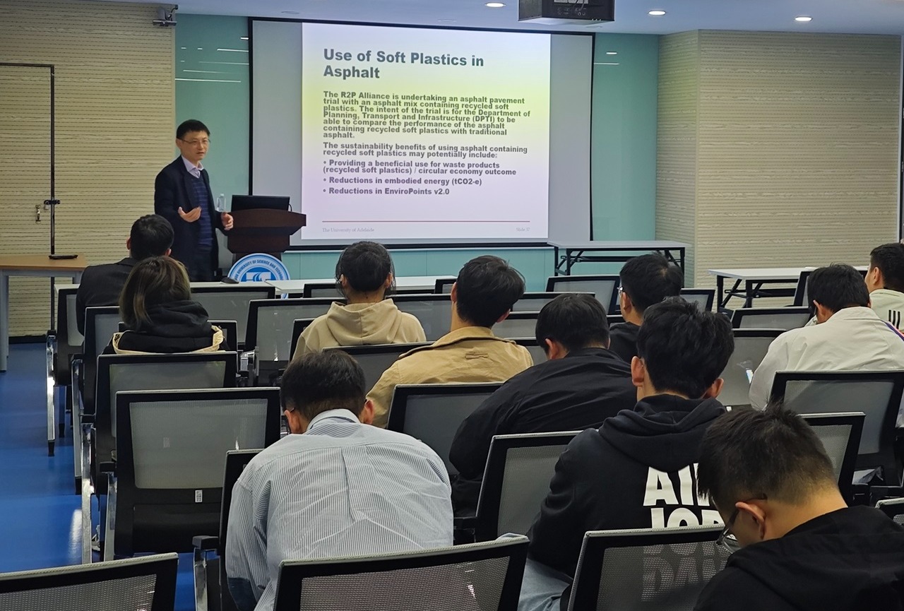 会后,左剑在江枫校区建筑系馆以“建筑行业循环经济的案例研究:以南澳大利亚为例”为题开展学术讲座,并与师生亲切互动。