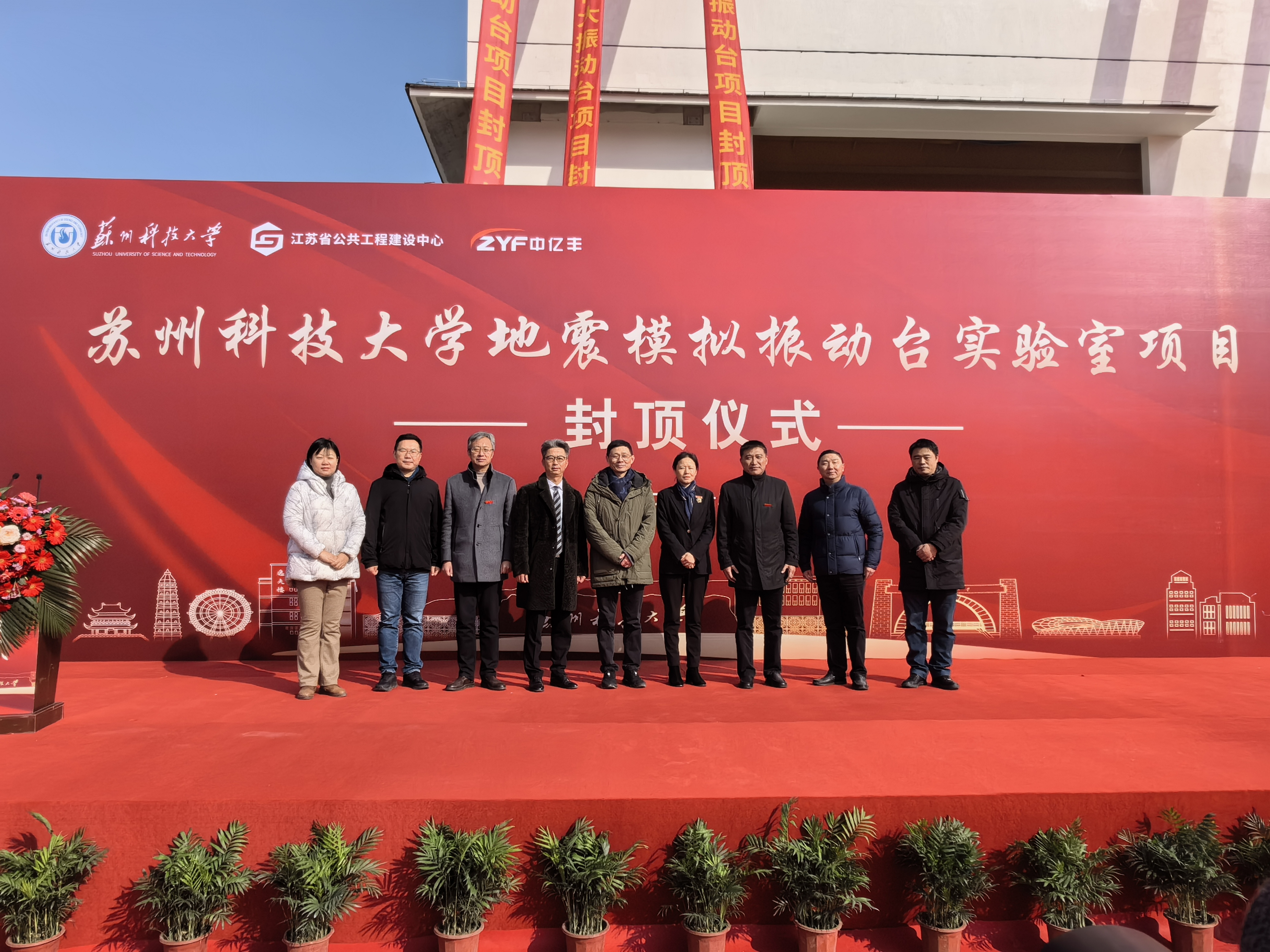 12月20日上午,我校土木工程学院地震模拟振动台实验室项目封顶仪式在石湖校区举行。校长顾菊平、江苏省公建中心副总经理娄永峰、中亿丰集团副总裁吴永辉、相关参建单位负责人,我校有关职能部门、土木工程学院负责人和师生代表参加,仪式由党委常委、副校长张新亚主持。