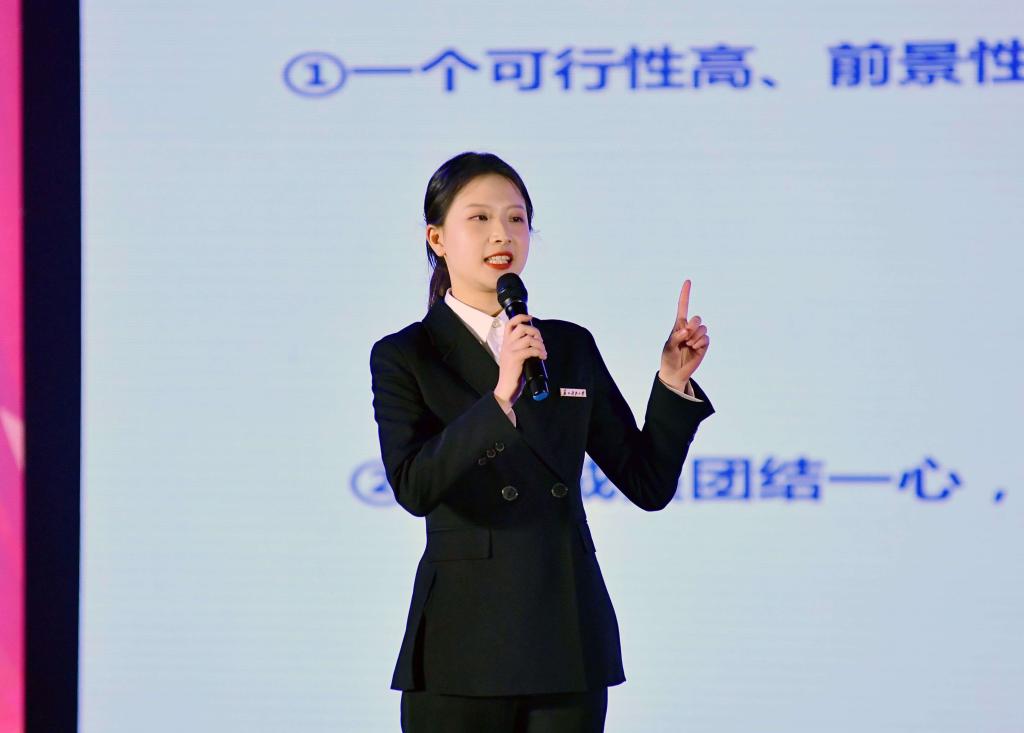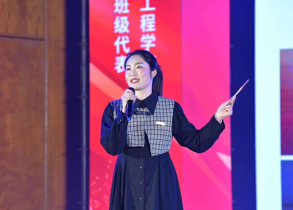 中国国际大学生创新大赛金奖项目团队代表、2020级物流管理专业唐丝雨,江苏省先进班级代表、给排水科学与工程专业2011班班长黄馨雯同学,2023校大学生年度人物代表、2020级日语专业杨云骢同学分别分享了各自的成长经历和先进事迹。