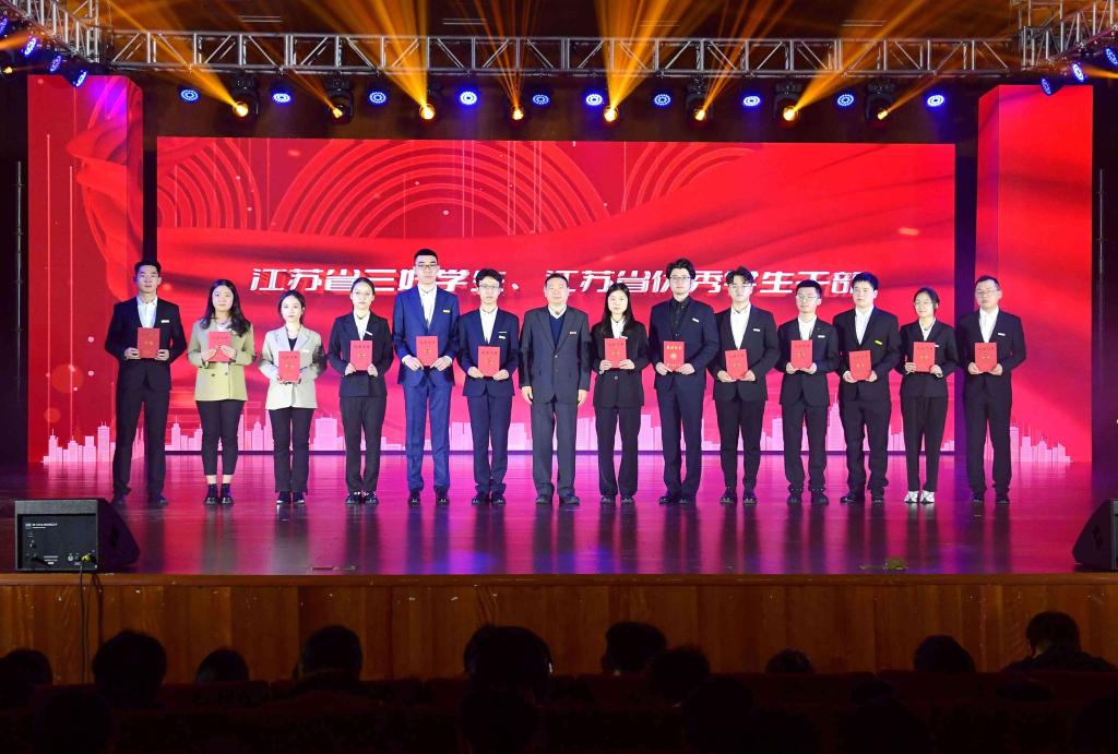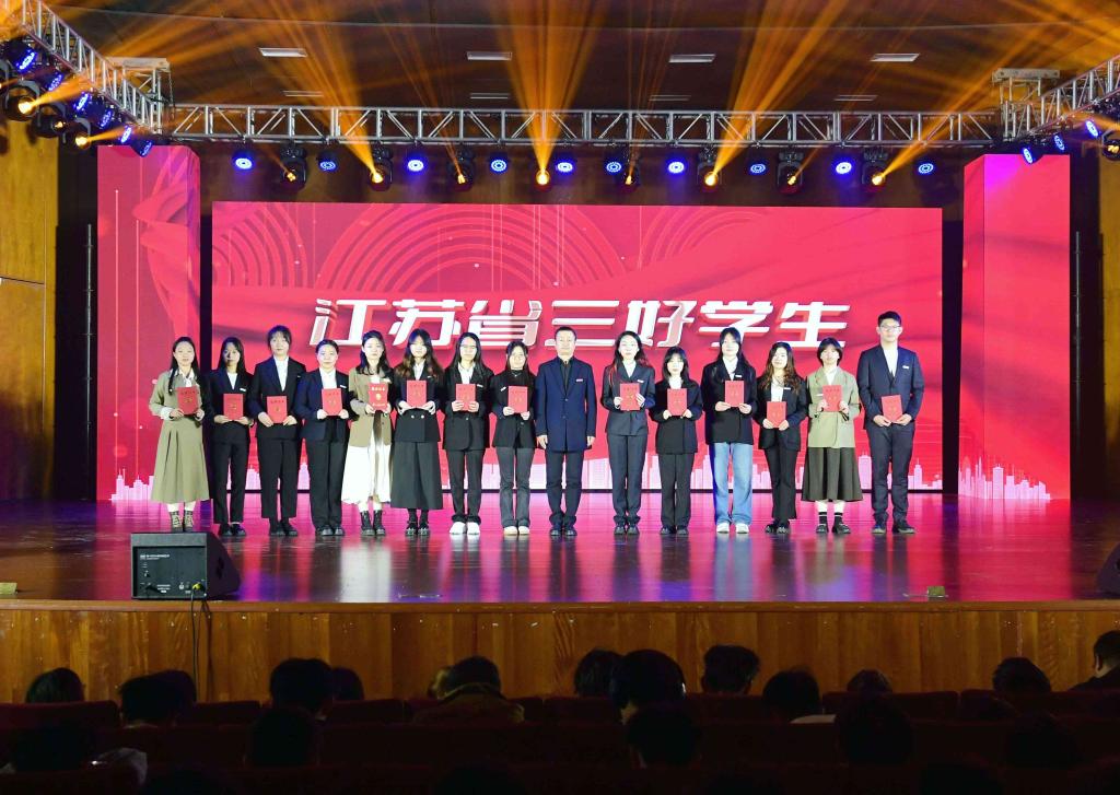 表彰大会分为“创新·卓越”“笃学·奋进”“先锋·榜样”三个篇章。与会领导分别为获得中国国际大学生创新大赛金奖、研究生国家奖学金、本科生国家奖学金、江苏省三好学生、江苏省优秀学生干部、江苏省先进班集体、校大学生年度人物、校三好学生标兵、校创业实践奖等学生代表颁奖。