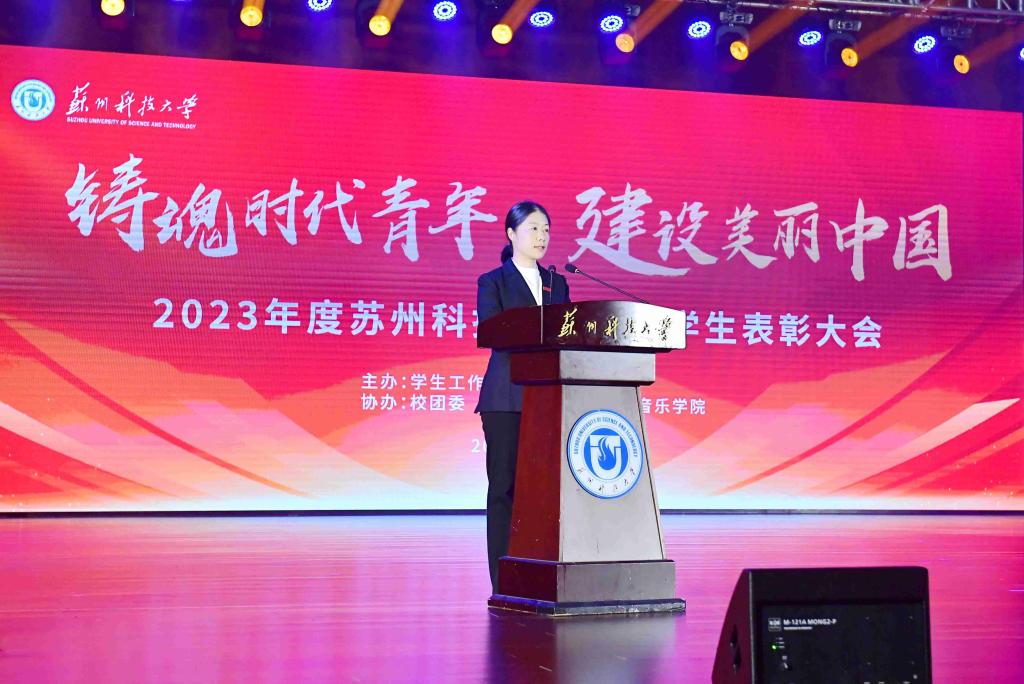 3月15日下午,“铸魂时代青年 建设美丽中国”2023年度苏州科技大学优秀学生表彰大会在石湖校区音乐厅举行。校党委书记姜朋明,党委常委、副校长李勇、崔雪丽、唐柏鉴,相关职能部门和教学单位负责人,辅导员和学生代表等出席大会。