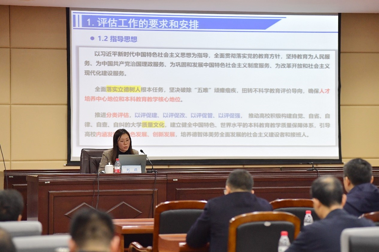 会上,19个教学单位分别汇报了本单位审核评估自评自建工作开展情况及成效。刘颖结合自身评建工作经验,以“二级学院参与本科教育教学审核评估工作的交流”为题作辅导报告。