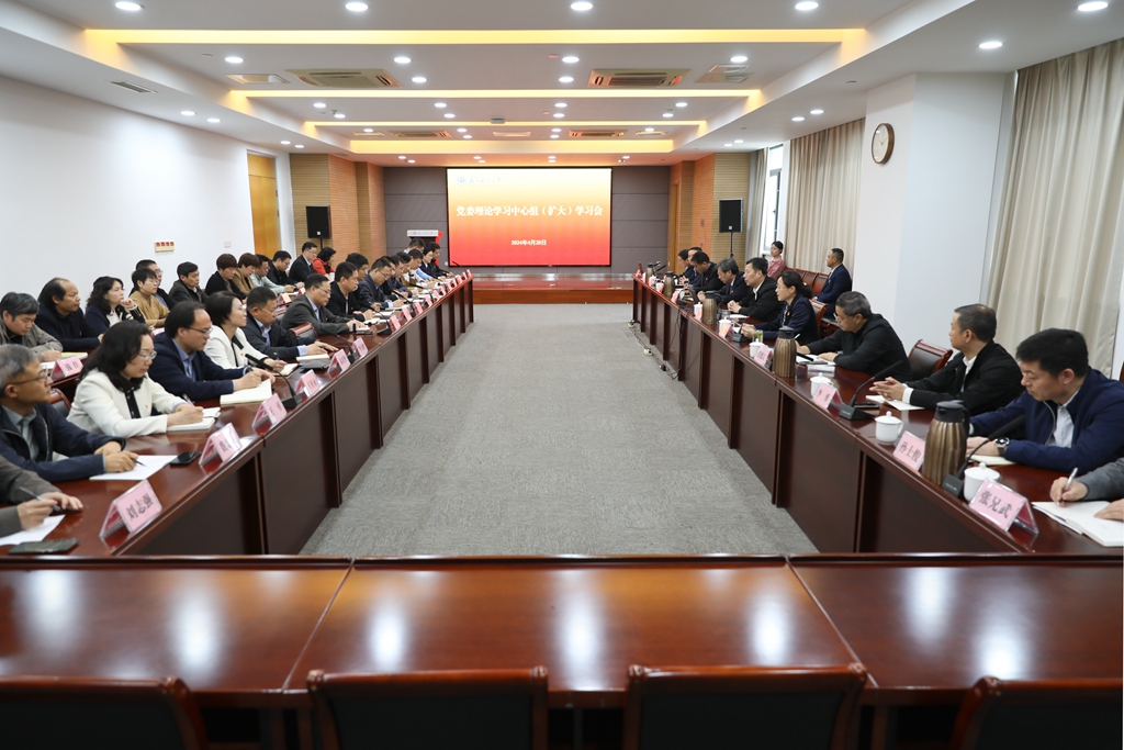 4月28日下午,学校在图书馆八楼会议室召开党委理论学习中心组(扩大)学习会,围绕“牢固树立和践行总体国家安全观”开展专题学习。校党委理论学习中心组成员、各二级党组织书记出席会议,会议由校党委副书记、校长顾菊平主持。