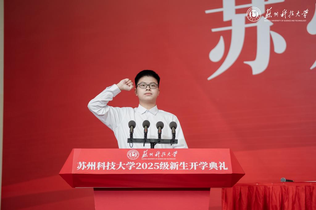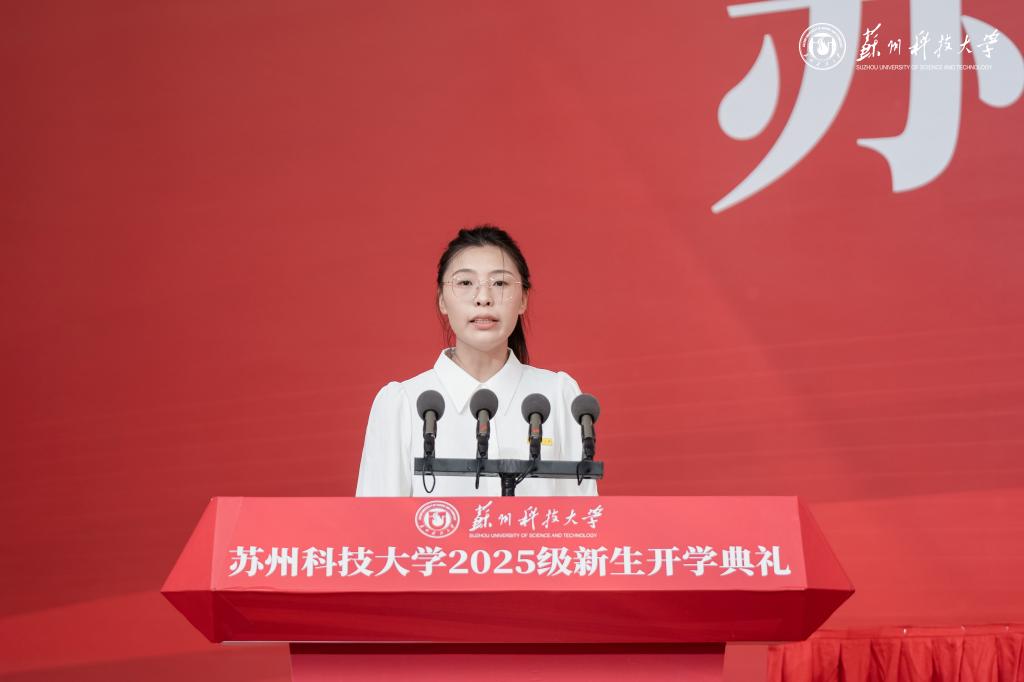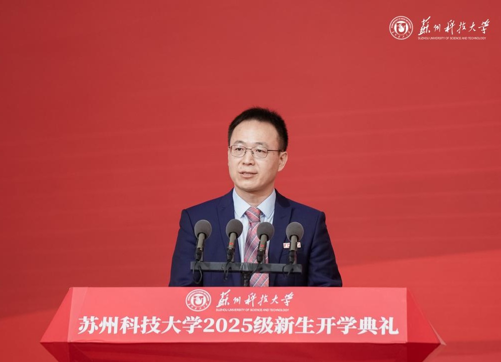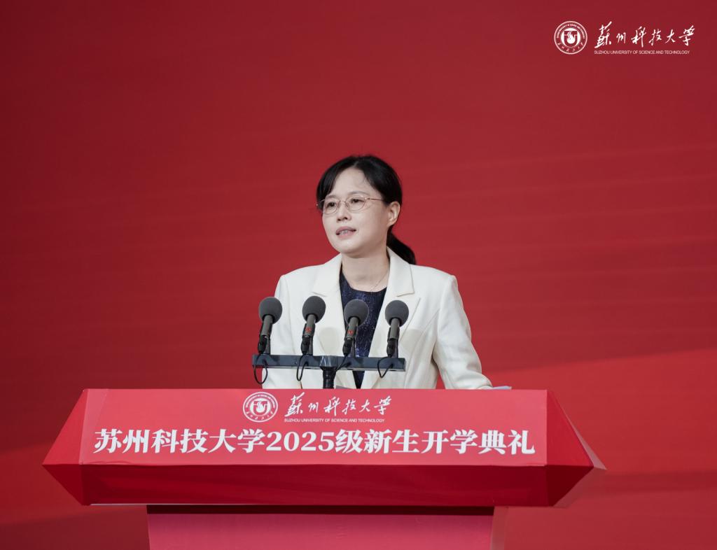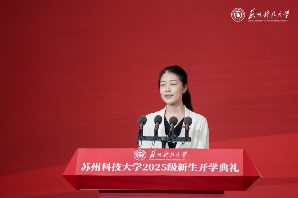 校长顾菊平代表全校师生员工和海内外校友,向全体新同学表示诚挚的祝贺和热烈的欢迎,并以《认识自我 追求大我》为题,为2025级本科生讲授“开学第一课”。“从今天起,苏科大将写入你们的人生履历,与你们一生相伴!希望你们在苏科大收获的不仅是受用一生的专业知识、职业发展所需的综合素质,更重要的是‘认识自我、追求大我’”。顾菊平表示,希望同学们从新起点出发,立高远志向,培育大视野大胸怀;从微视角深入,强创新根基,探求大学问大无限;从关键处发力,扛使命在肩,彰显大成长大担当。