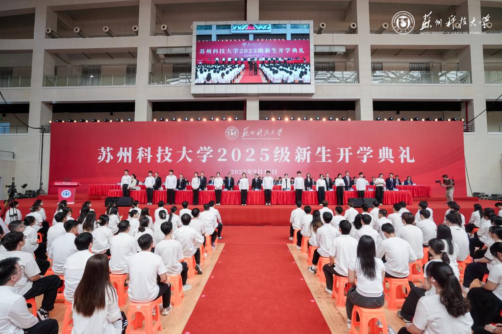 九月的校园,层林尽染,色彩斑斓。9月17日上午,我校在石湖校区体育馆举行2025级新生开学典礼。校党委书记姜朋明、校长顾菊平等全体校领导,中国科学院院士唐叔贤,相关职能部门和教学单位负责人等出席典礼,共同见证这一承载新生们梦想与希望的重要时刻。党委常委、副校长崔雪丽主持典礼。