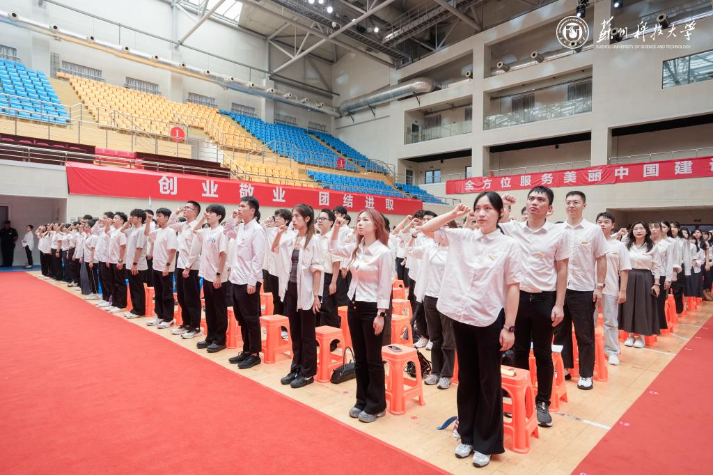 在环境科学与工程学院2024级环境工程专业硕士研究生王浩天同学的带领下,全体研究生新生宣誓:“胸怀家国天下,弘扬创新精神,提升学术品位,勇攀科研高峰……”
