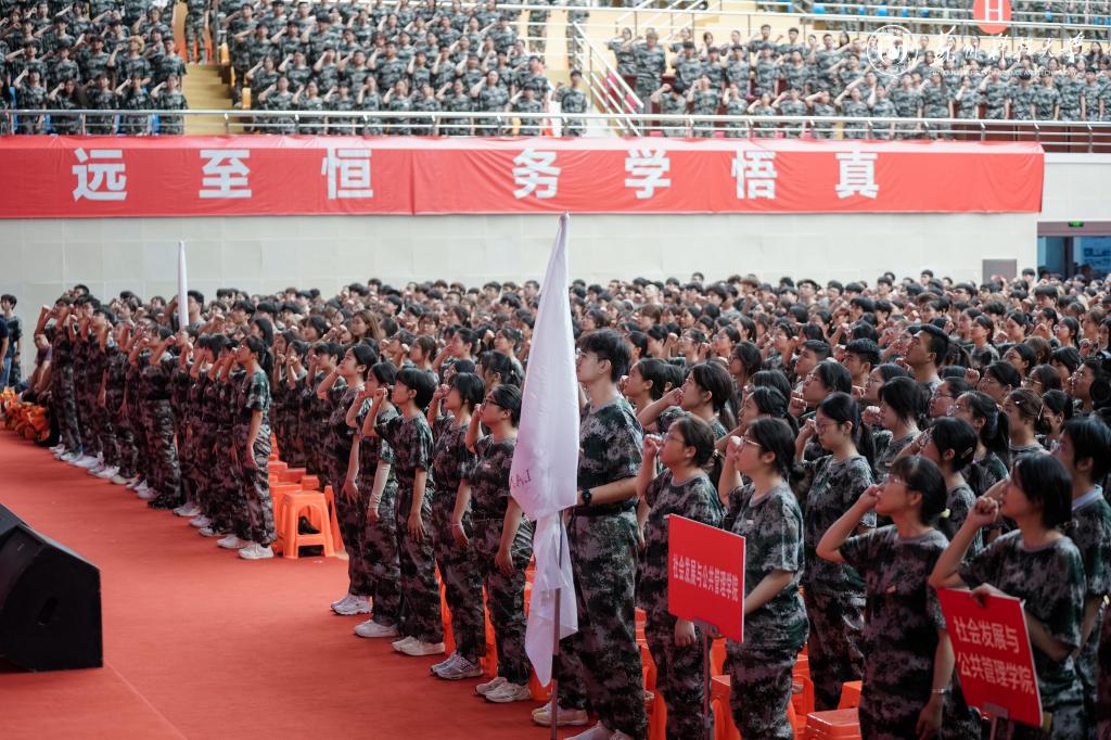 随后,2025级本科生军训动员大会举行。姜朋明代表学校向2025级军训旅授旗。党委常委、副校长何湘江作军训动员,希望同学们以军训为熔炉,锻造强国之志;以纪律为准绳,丈量成长高度;以协作为舟楫,共度大学时光。