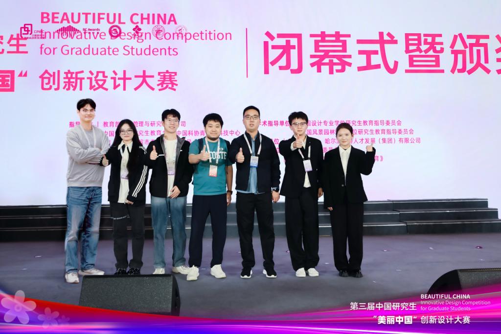 近日,第三届中国研究生“美丽中国”创新设计大赛全国总决赛在哈尔滨举行,经过激烈角逐,我校建筑与城市规划学院研究生蒋昊、陈妍池、谢涵宇、丁子健、武大维荣获环境空间设计赛道一等奖,陆建城、孙嘉麟老师获评优秀指导教师。