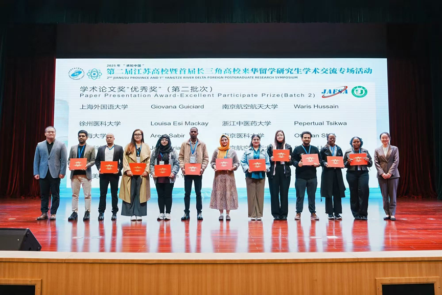 据悉,本次活动由国家留学基金管理委员会主办,江苏省高等教育学会外国留学生教育管理研究委员会和江苏大学承办。我校三位硕士留学生受邀参会,并通过主旨报告、分学科研讨及海报展示等方式,与来自长三角55所高校的400余位来华留学生及优秀导师共同交流最新学术成果。