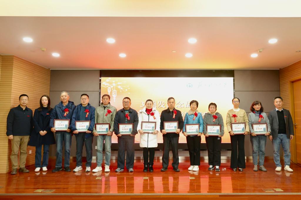温波宣读了荣休教职工名单。校领导为参加仪式的退休教职工代表颁发纪念品,表达学校对教职工多年辛勤工作的认可和感激之情。