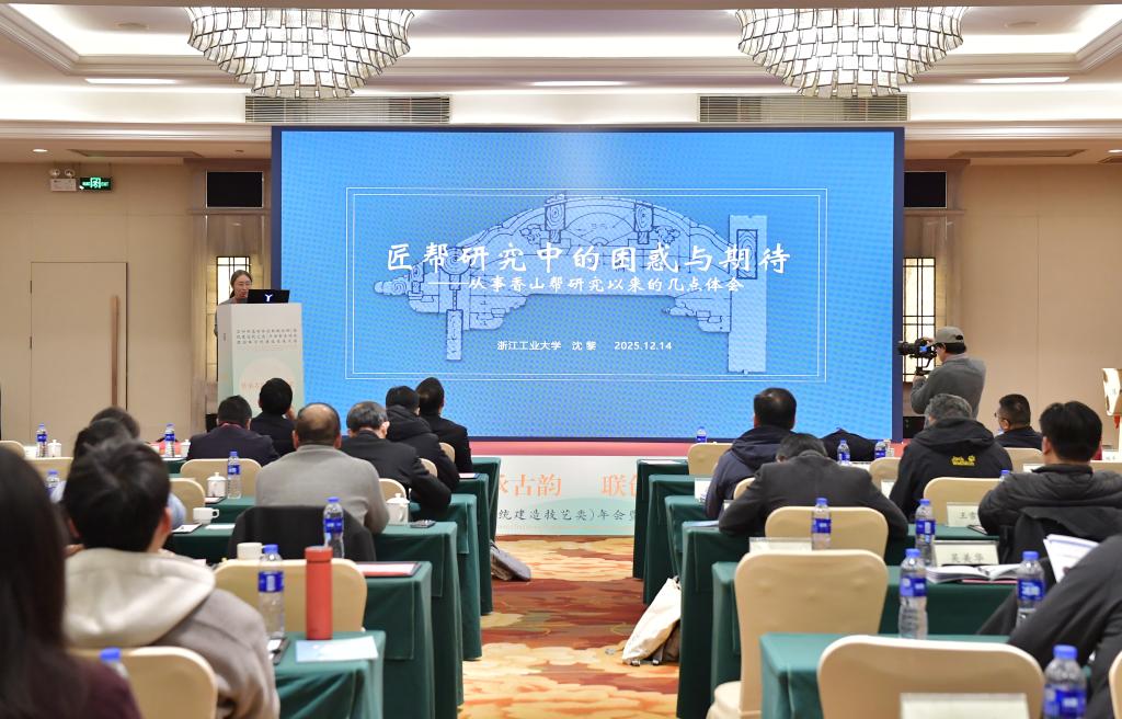 学术研讨环节由胡莹主持。江苏省设计大师、苏州园林设计院股份有限公司荣誉董事长、首席设计师贺风春,苏州市香山帮营造协会会长、苏州香山工坊建设投资发展有限公司董事长冯晓东,浙江工业大学副教授沈黎,建筑与城市规划学院副教授雍振华分别作学术报告,围绕香山帮营造技艺的“活态传承”研究、香山帮数智化路径探索、从事香山帮研究的体会和古建筑修缮等方面,为与会嘉宾带来了关于传统建造技艺传承与创新的思想盛宴。