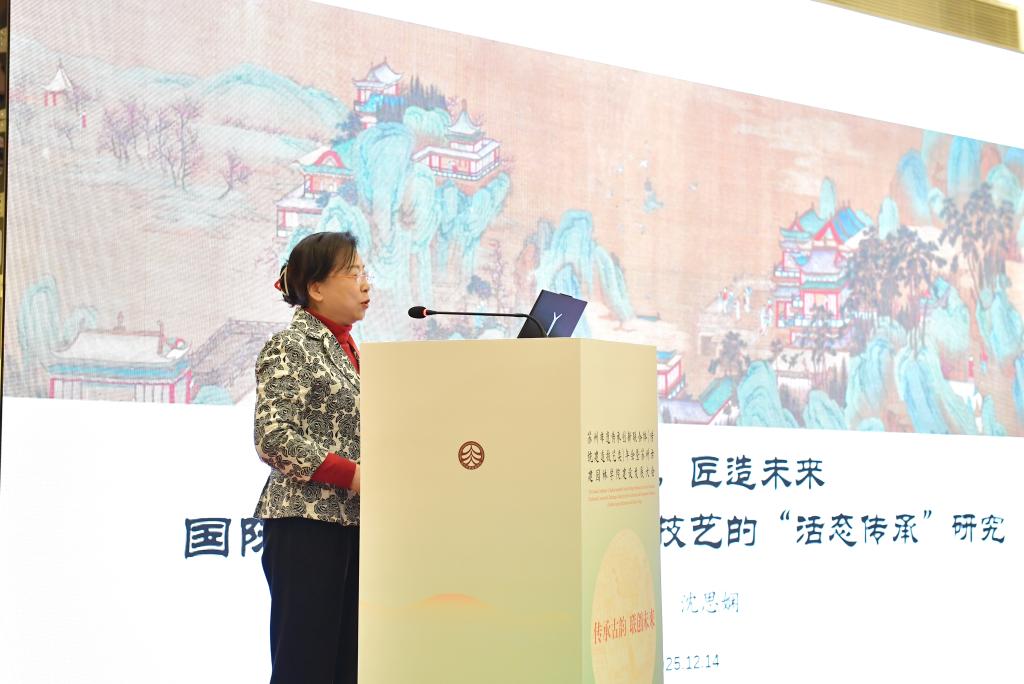 苏州非遗传承创新联合体常务副理事长、建筑与城市规划学院副院长胡莹作年度工作报告,系统总结联合体在传统建造技艺保护、活态传承与创新实践等方面取得的阶段性成果。