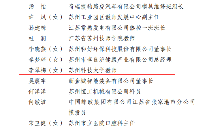 近日,江苏省总工会、江苏省人力资源和社会保障厅发布了《关于表彰2025年江苏省五一劳动奖、江苏省工人先锋号和江苏省五一巾帼标兵的决定》(苏工发〔2025〕9号),我校环境科学与工程学院教授李翠梅荣获江苏省“五一劳动奖章”。