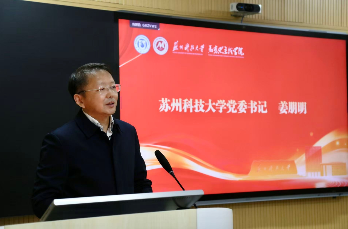 12月24日下午,我校在石湖校区举办“青马名师培育工作坊”系列培训暨“思政课教学设计与创新”专题备课会,特邀全国教师教学创新大赛一等奖、江苏省教师教学创新大赛特等奖获得者、常州大学马克思主义学院教师周本卫交流指导。校党委书记姜朋明、校长顾菊平、党委副书记洪晔和党委常委、副校长温波出席活动。相关职能部门负责人、马克思主义学院全体教师参加活动。