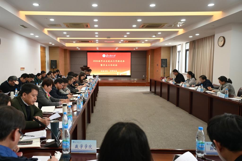 3月23日下午,学校召开2026届毕业生就业工作推进会。校党委书记姜朋明、校长顾菊平出席会议,教务处、学生工作处、研究生院和各学院党政负责人参加会议。会议由党委常委、副校长崔雪丽主持。