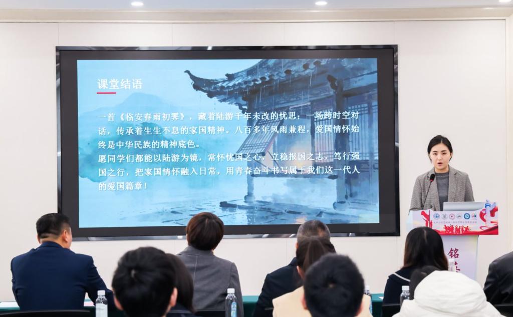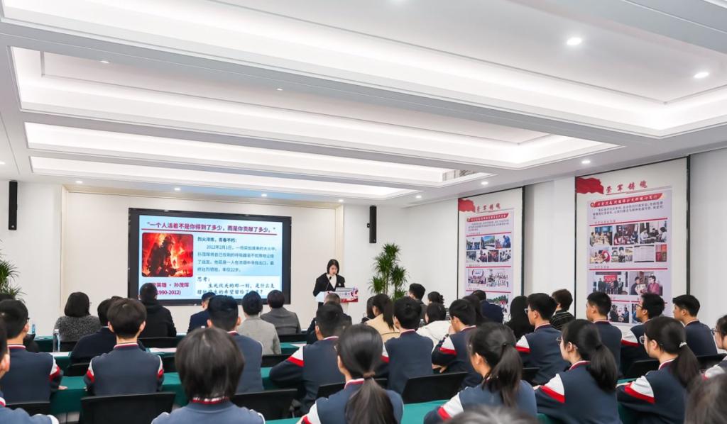在“声动的思政课”实境课堂上,来自高新区实验小学校的周晓虹老师、苏州学府中学校的吴怡雯老师、苏州外国语学校的李乐瑶老师和我校思政课教师林于良围绕“传承英烈精神,服务美丽中国建设”主题进行微课展示,通过层层递进的教学设计,探索一体化教学新路径。与会专家进行了现场点评。