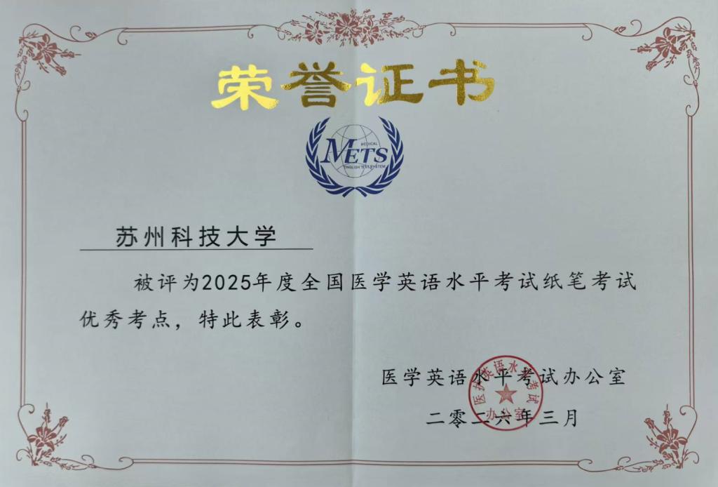 我校荣获“2025年度全国医学英语水平考试纸笔考试优秀考点”