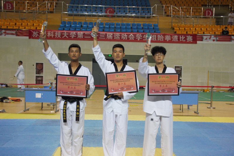10月11日晚,校运会学生组跆拳道比赛举行,59名运动员角逐3个大项、14个小项的比赛。最终,天平学院二队获得团体冠军,天平学院一队获得团体亚军,机械工程学院获得团体季军,土木工程学院、建筑与城市规划学院、环境科学与工程学院、教育学院和商学院分获团体四至八名。