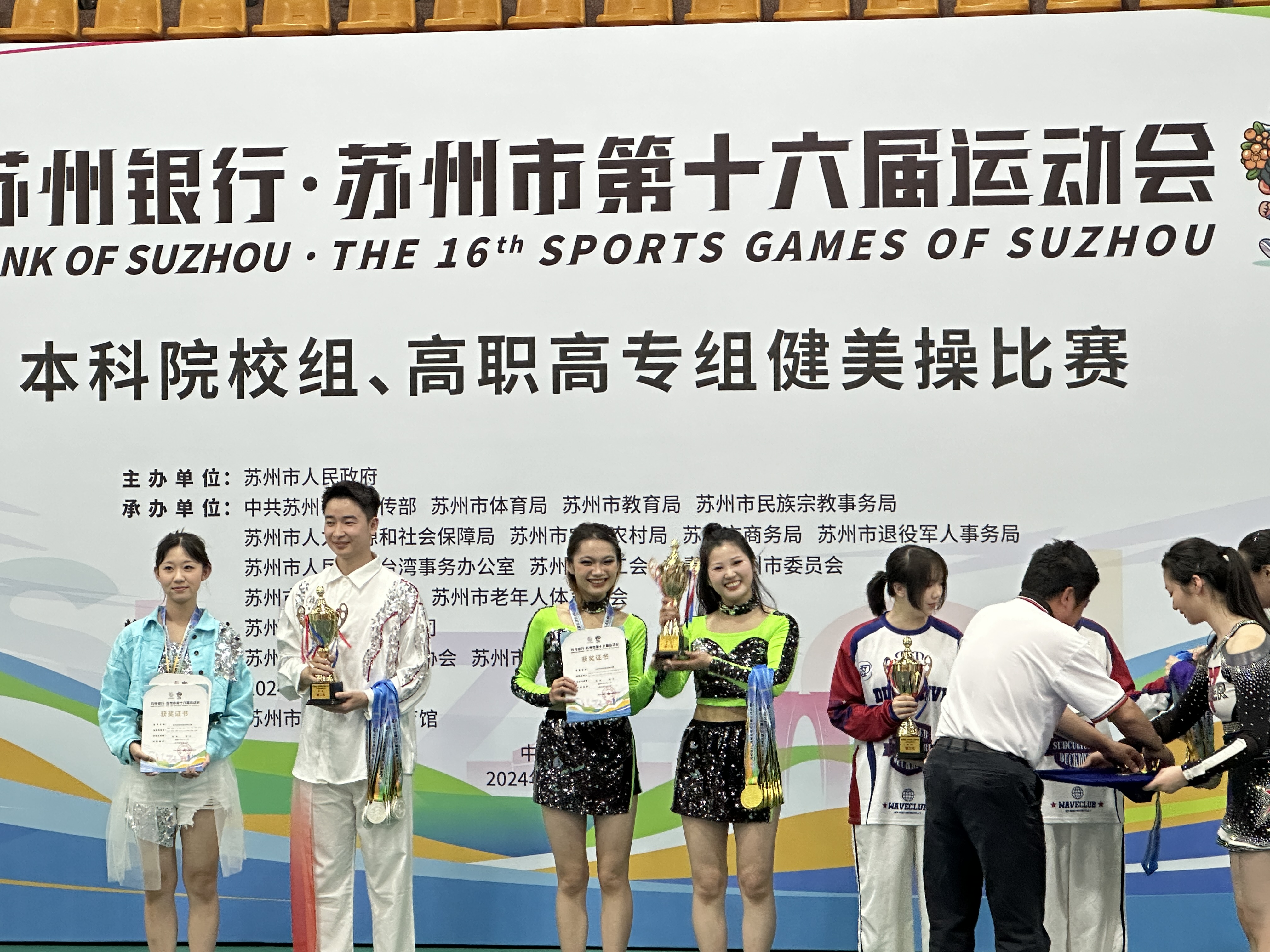 6月1日,苏州市第十六届运动会本科院校组、高职高专组健美操比赛在苏州市职业大学举行。经过激烈角逐,我校代表队获得本科院校组冠军。