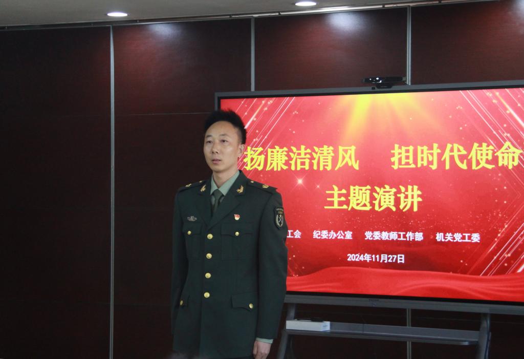 为引导广大教职工不断增强廉洁修身意识,坚定理想信念,涵养高尚师德,11月27日下午,校工会、校纪委办公室、校党委教师工作部、机关党工委在行政楼5313举办“扬廉洁清风担时代使命”主题演讲比赛。全校17个分工会31名选手参加比赛。