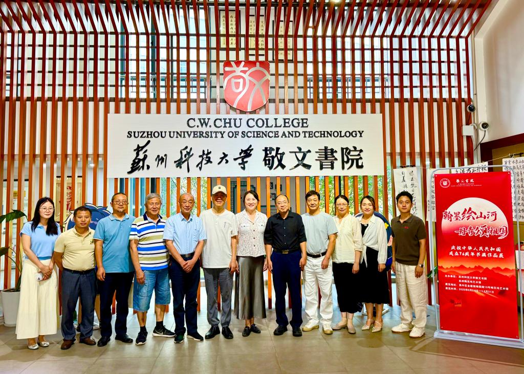 9月26日下午,敬文书院举办“翰墨绘山河,丹青颂祖国——庆祝中华人民共和国成立76周年书画作品展”座谈会暨开幕式。苏州市职工文化体育协会美术专业委员会主任薛龙、苏州工艺美术学院美术馆副馆长杨明、石湖美术馆馆长吴甫清、苏州金阊画院院长袁景伟、苏州国画院专职画家李亚光,我校敬文书院党总支书记兼院长张菡、党委宣传部副部长陈玮、敬文书院党总支副书记范晴岚、社会发展与公共管理学院教授袁成亮、常任导师及学生代表参加座谈。