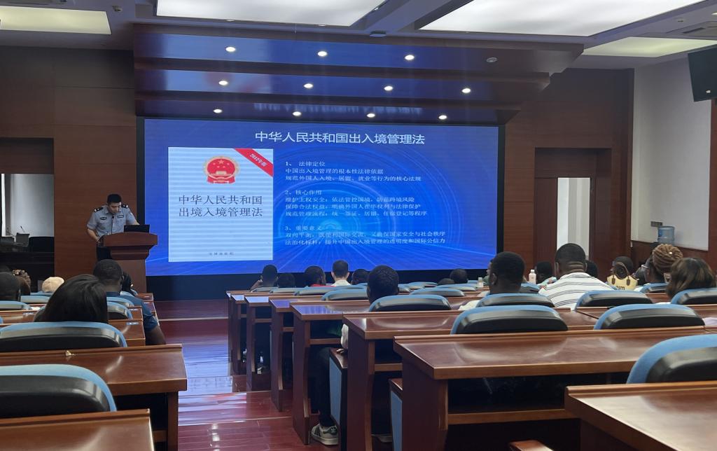 高新区分局出入境管理大队警官陆啸峰作在华法律法规教育主题讲座,系统解读最新出入境管理政策,并结合近年来高校涉外管理中的典型案例,围绕外籍人士在华学习工作手续办理、法律法规及电信诈骗防范等关键内容进行讲解。互动环节中,留学生踊跃提问,就签证办理、实习就业政策等问题进行了交流。