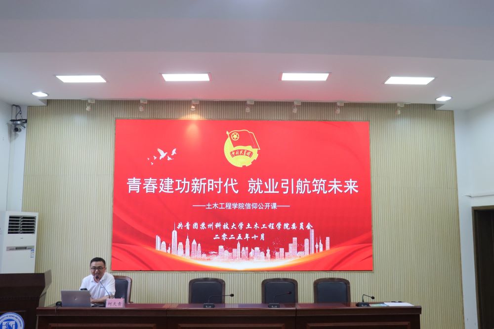 与会人员共同观看了九华山世界地质公园宣传片,九华山风景区管委会人才服务中心主任柯天青围绕“青春建功新时代,就业引航筑未来”主题,面向学院团员青年开展信仰公开课,激励青年学生坚定理想信念、锤炼专业本领,将个人职业发展融入生态文明建设和区域发展大局。