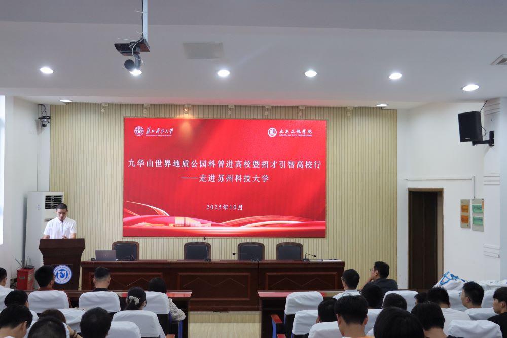 10月17日,由土木工程学院承办的“九华山世界地质公园科普进高校及招才引智高校行”活动在我校举行。九华山风景区党工委政治处主任燕丽及相关负责同志,土木工程学院党委书记赵宝成、党委副书记潘治,学生工作处副处长崔炜和师生代表参加活动。