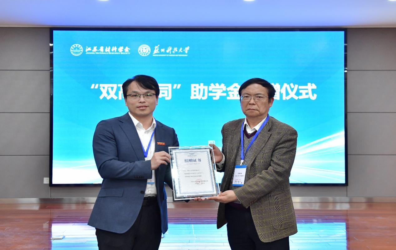 活动现场,材料学院院长郭春显接受“科技创新-产业创新服务工作站”授牌。元六鸿远(苏州)电子科技有限公司捐赠助学金,为校企协同育人注入了动力。苏州兴业材料科技股份有限公司、元六鸿远(苏州)电子科技有限公司与我校签署了“双高协同”产学研合作协议。