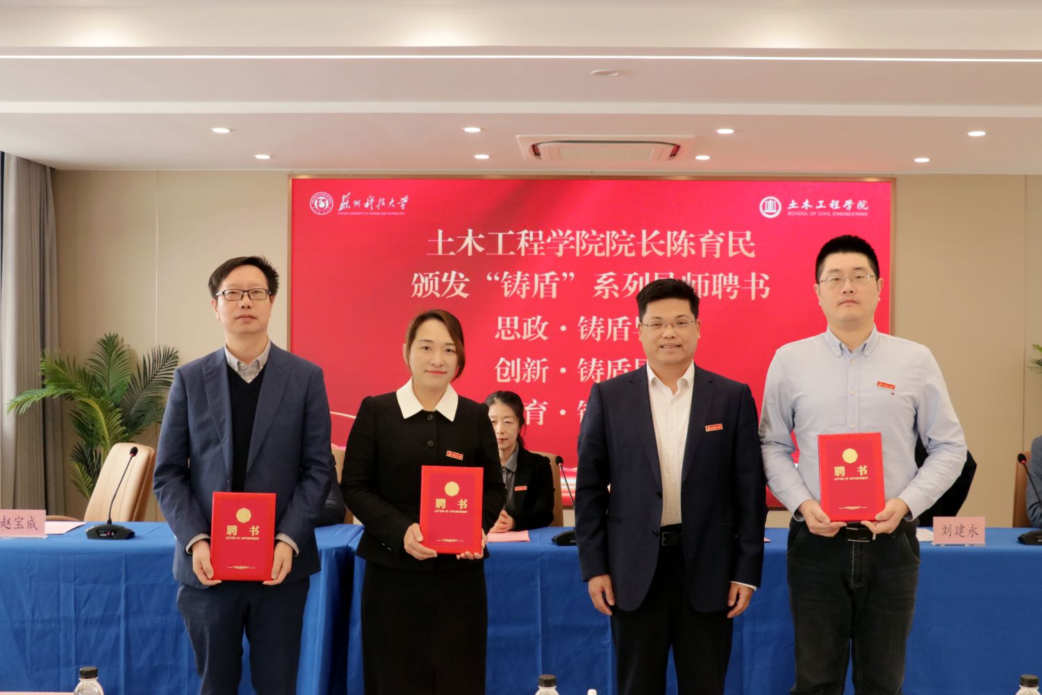 2025级“钱七虎卓越班”特聘党委宣传部副部长陈玮为“思政·铸盾导师”、教务处副处长夏志远为“创新·铸盾导师”、家长代表闻云呈为“共育·铸盾导师”,并举行了聘书颁发仪式。闻云呈作为“铸盾”导师代表发言,期待在卓越班人才培养中做好家校沟通桥梁,为学生成长成才保驾护航。仪式上,党委组织部副部长刘宇与土木工程学院党委副书记潘治共同为“砼心铸盾”党建品牌揭牌。江苏瑞宁智能科技有限公司董事长龚瑞良与党委研究生工作部、学生工作部部长章鸣共同为大学生就业创业基地揭牌。刘建永为新生送上寄语。