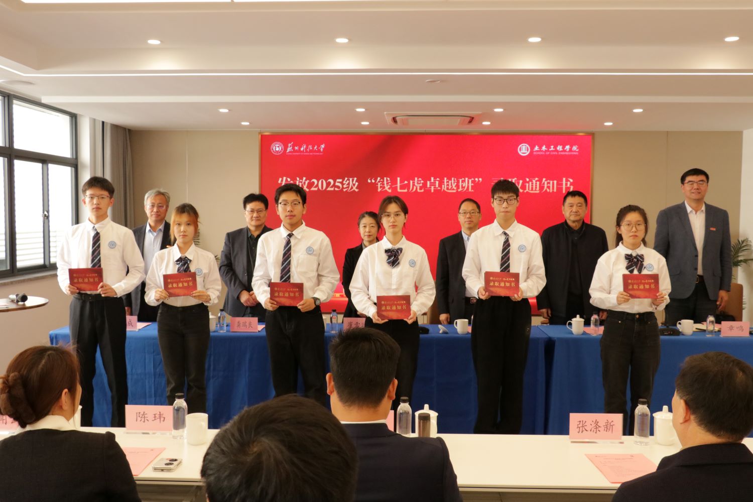 与会领导嘉宾共同为2025级钱班新生发放了录取通知书。2025级“钱七虎卓越班”班长马宇冬作为学生代表发言,表达了对未来学习生活的期待和立志卓越的决心。