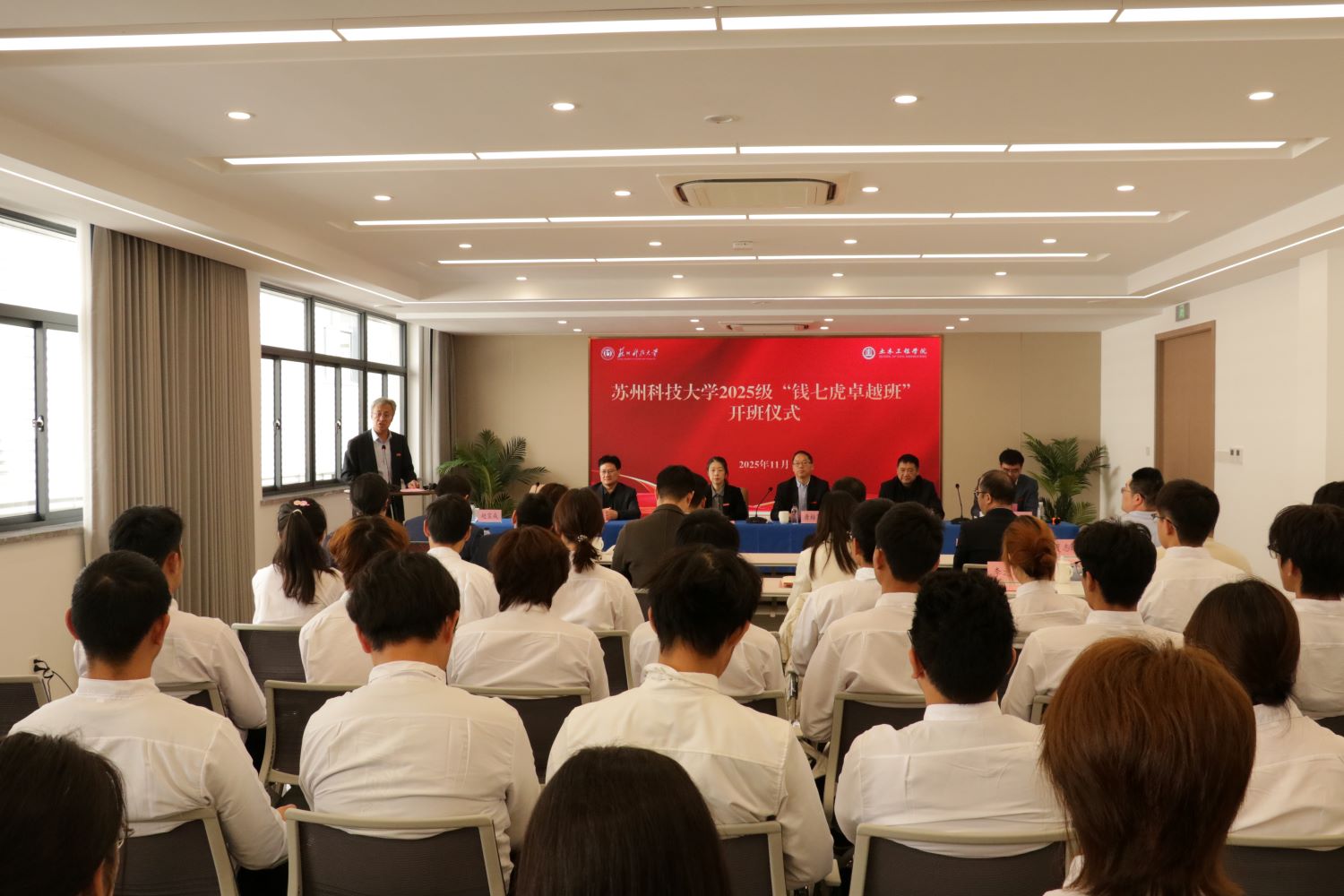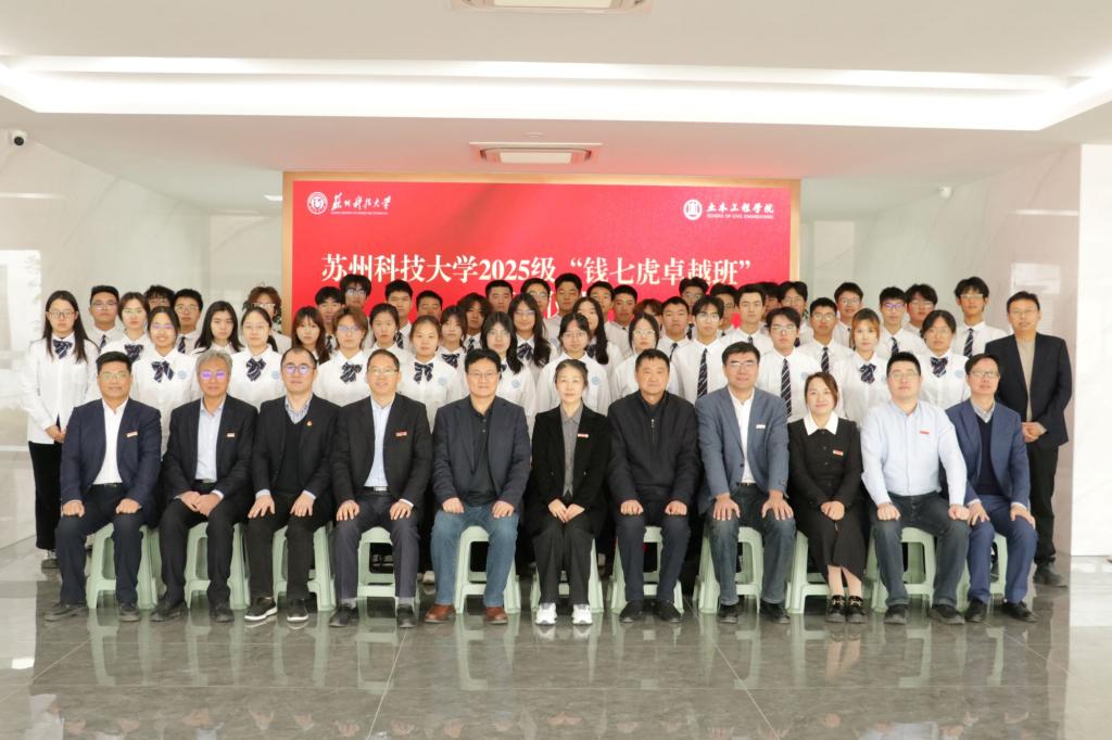 11月28日上午,我校2025级“钱七虎卓越班”开班仪式在江苏瑞宁智能科技有限公司新质生产力创新中心举行。江苏瑞宁智能科技有限公司董事长龚瑞良,钱七虎院士团队成员、苏州国动防护研究院首席专家刘建永,我校党委常委、副校长崔雪丽、唐柏鉴出席活动。党委组织部、宣传部、教务处、学生处、土木工程学院等相关负责人、企业代表、家长代表,2025级“钱七虎卓越班”全体新生和教师代表参加仪式。仪式由土木工程学院党委书记赵宝成主持。